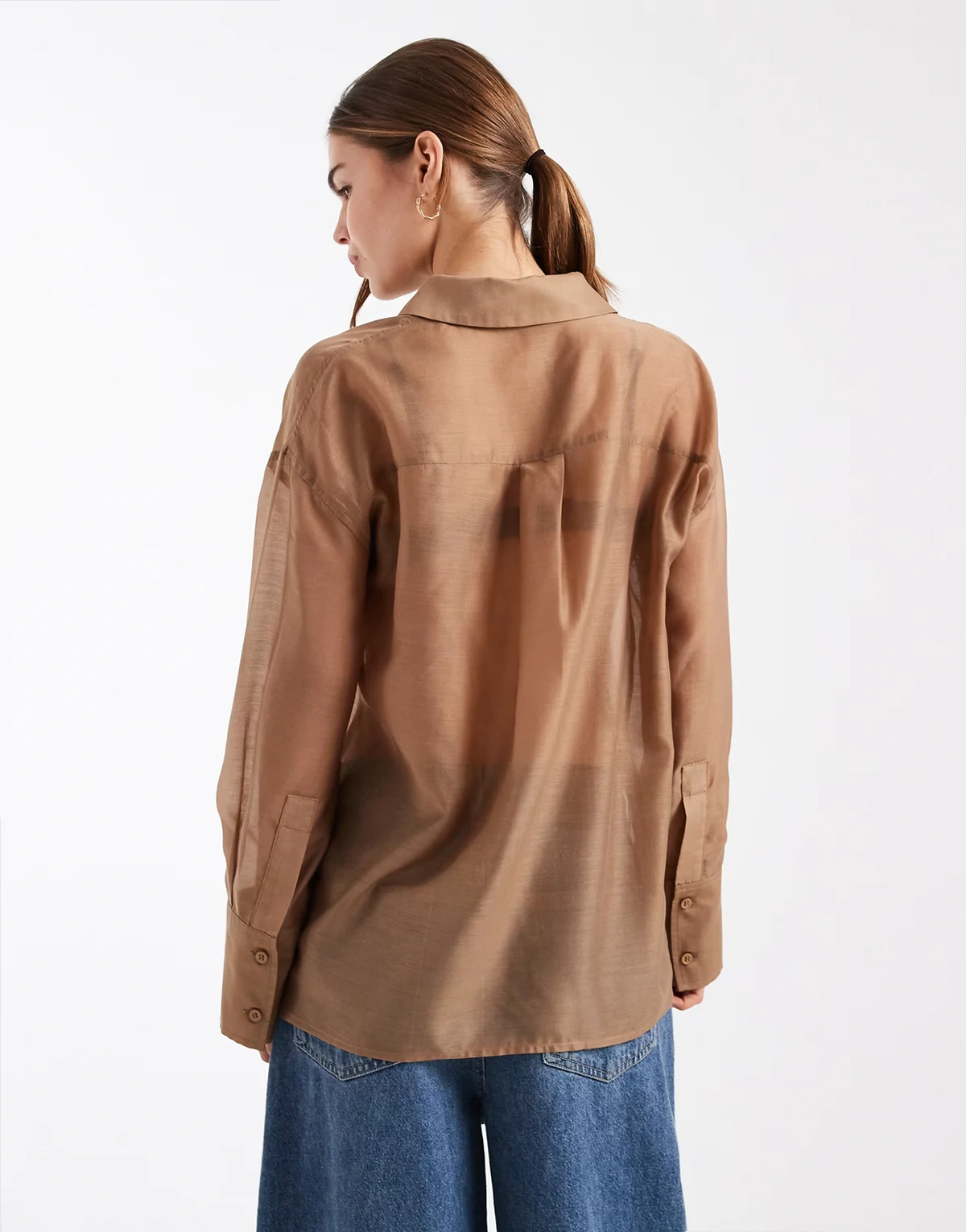 sheer deep cuffs shirt in taupe