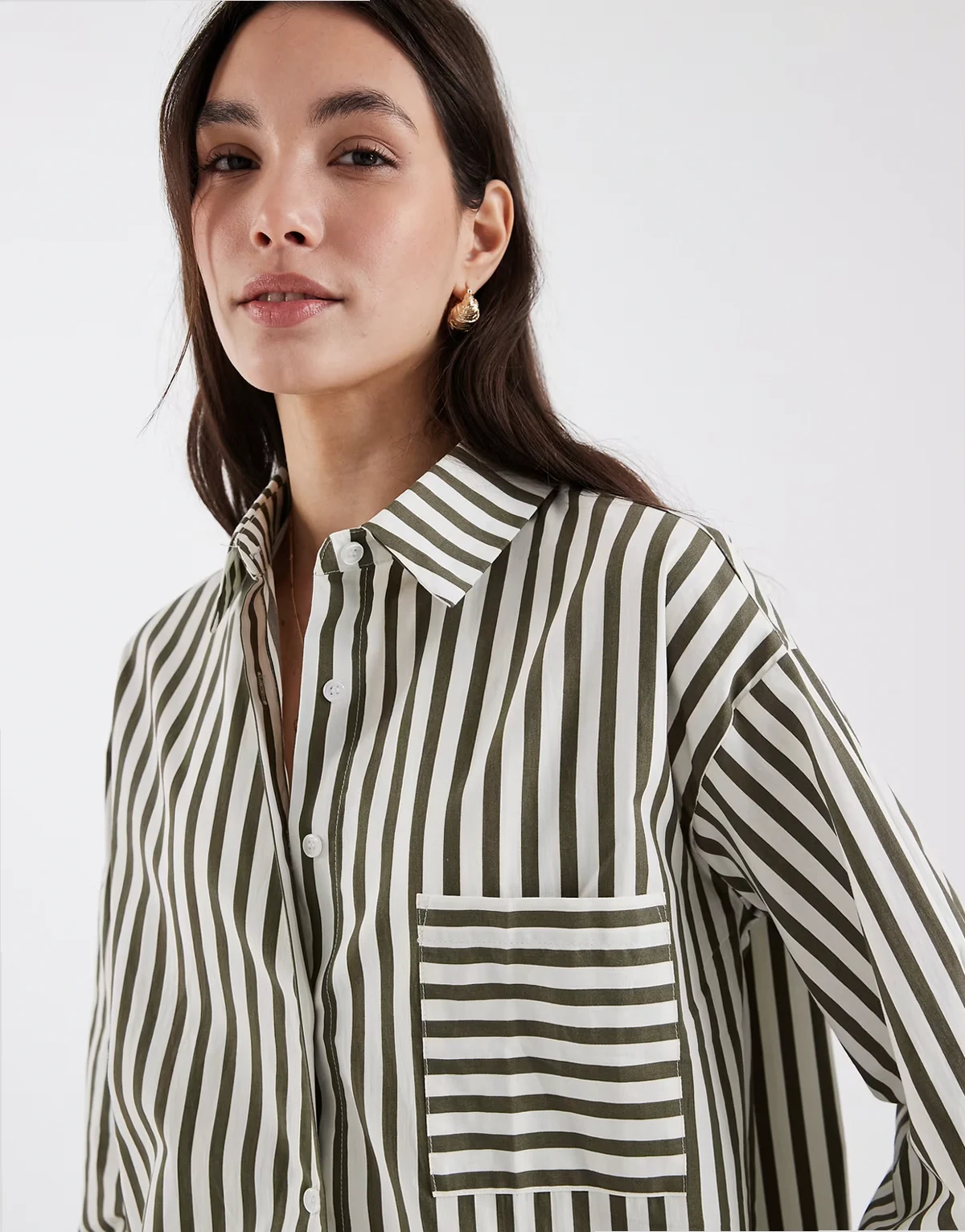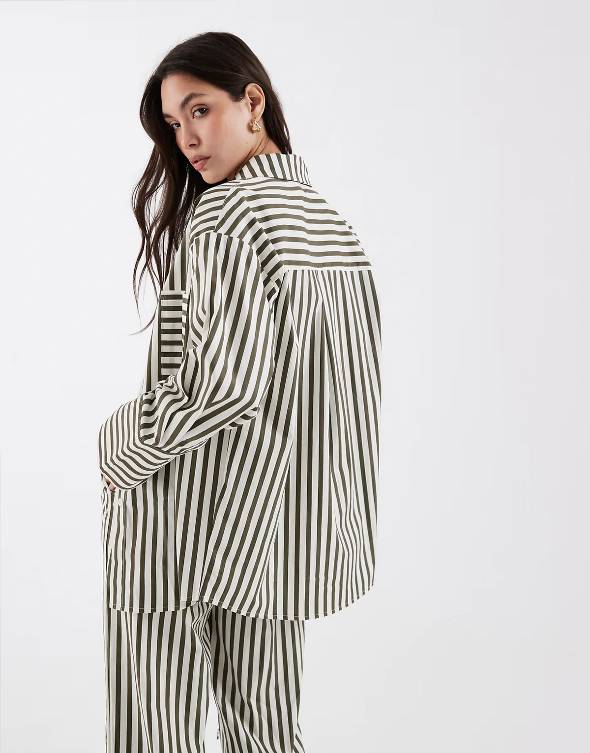 cotton pocket front oversized beach shirt in olive & white stripe - part of a set