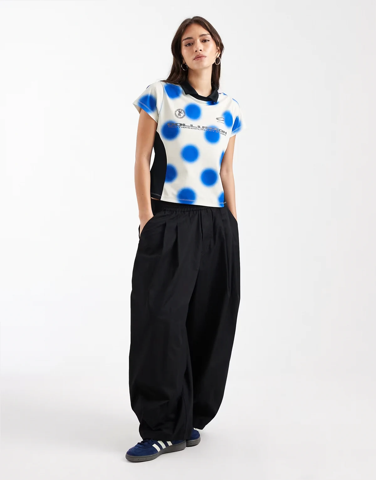 blurred polka dot fitted soccer tee