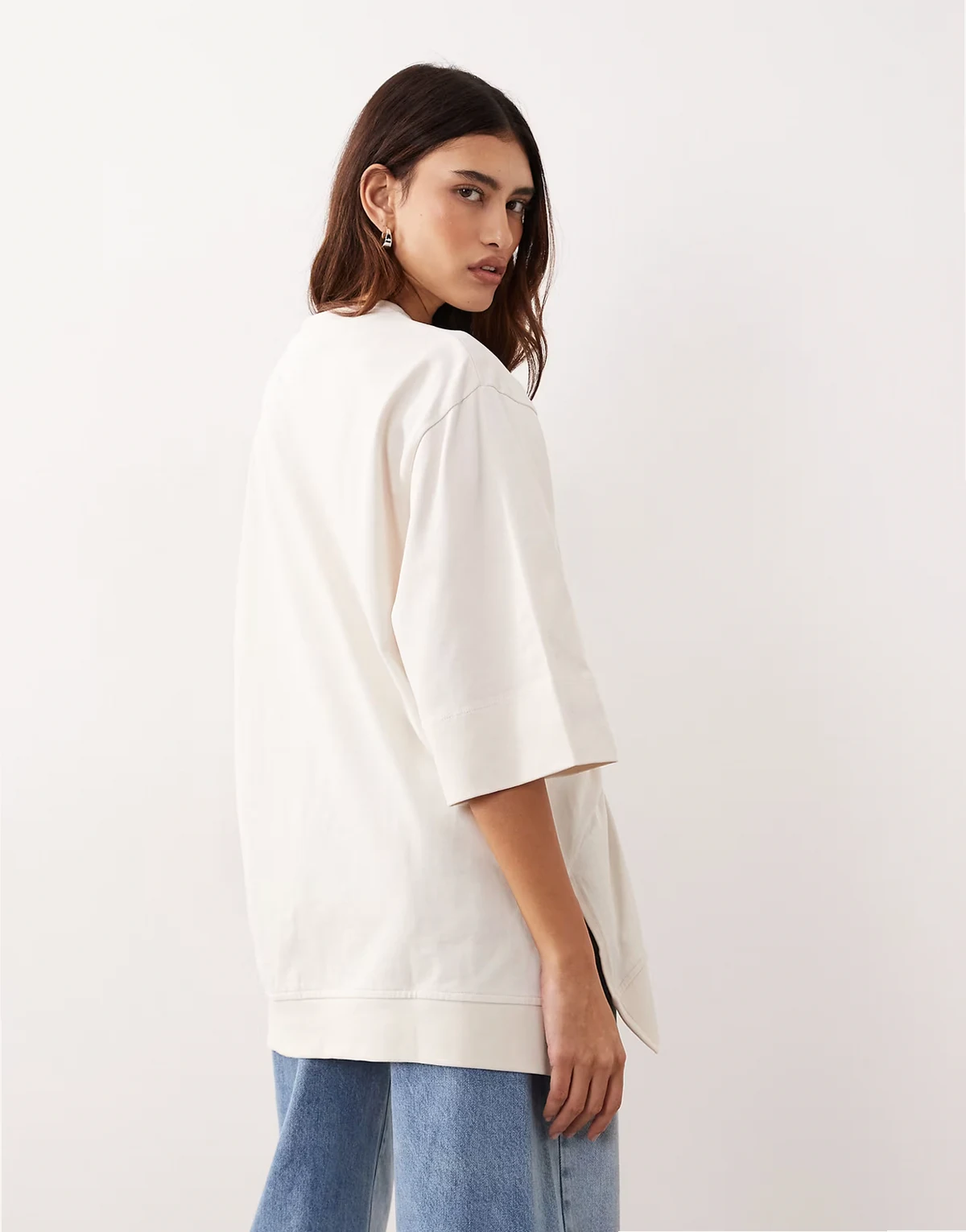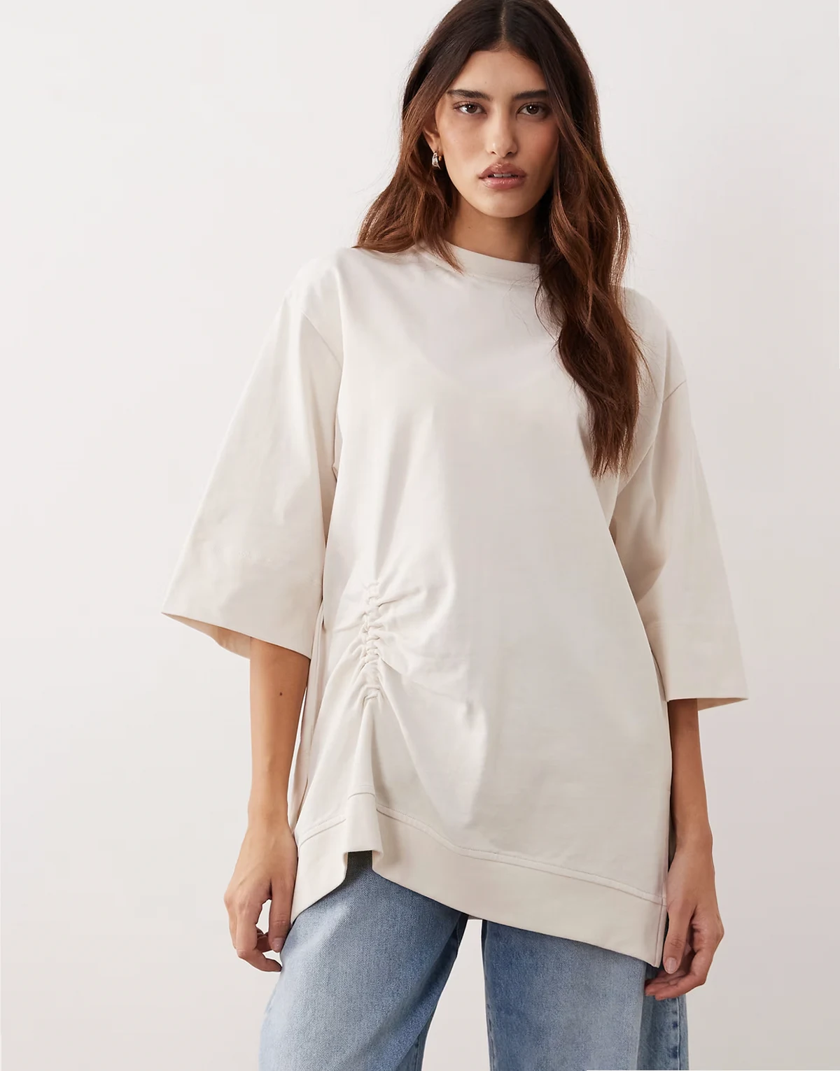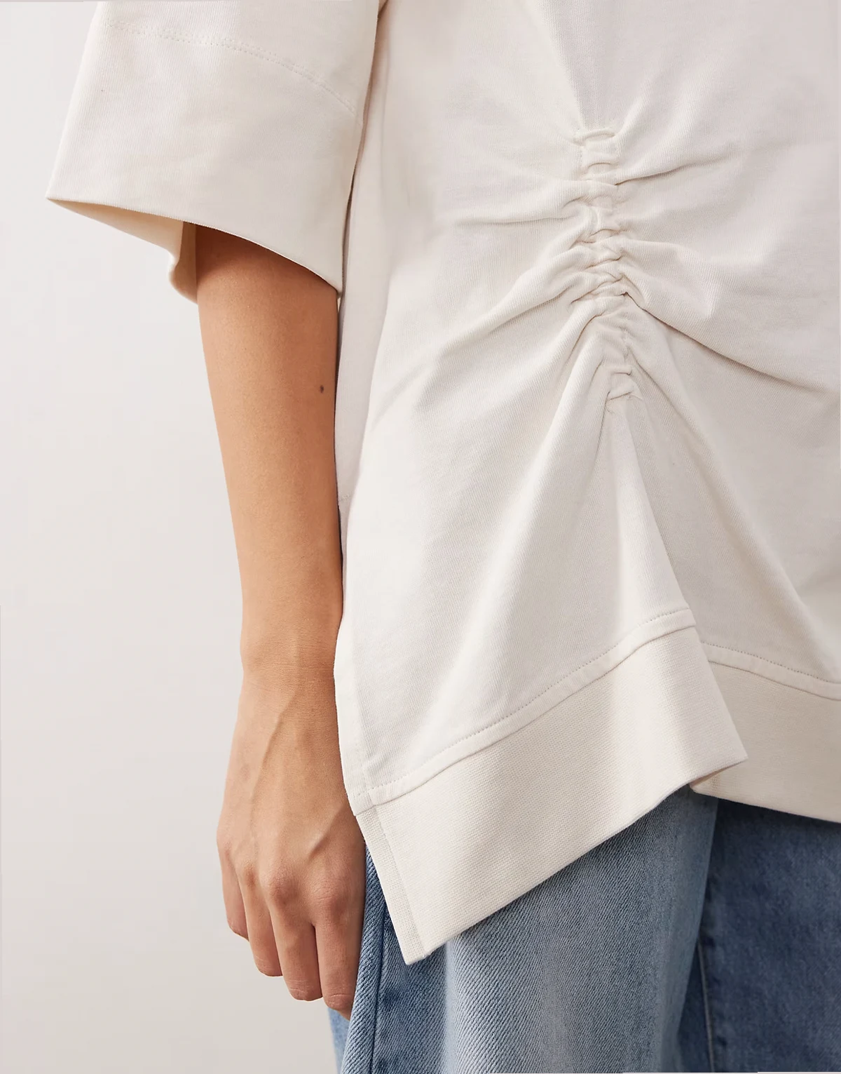 side ruched detail oversized tee in ecru