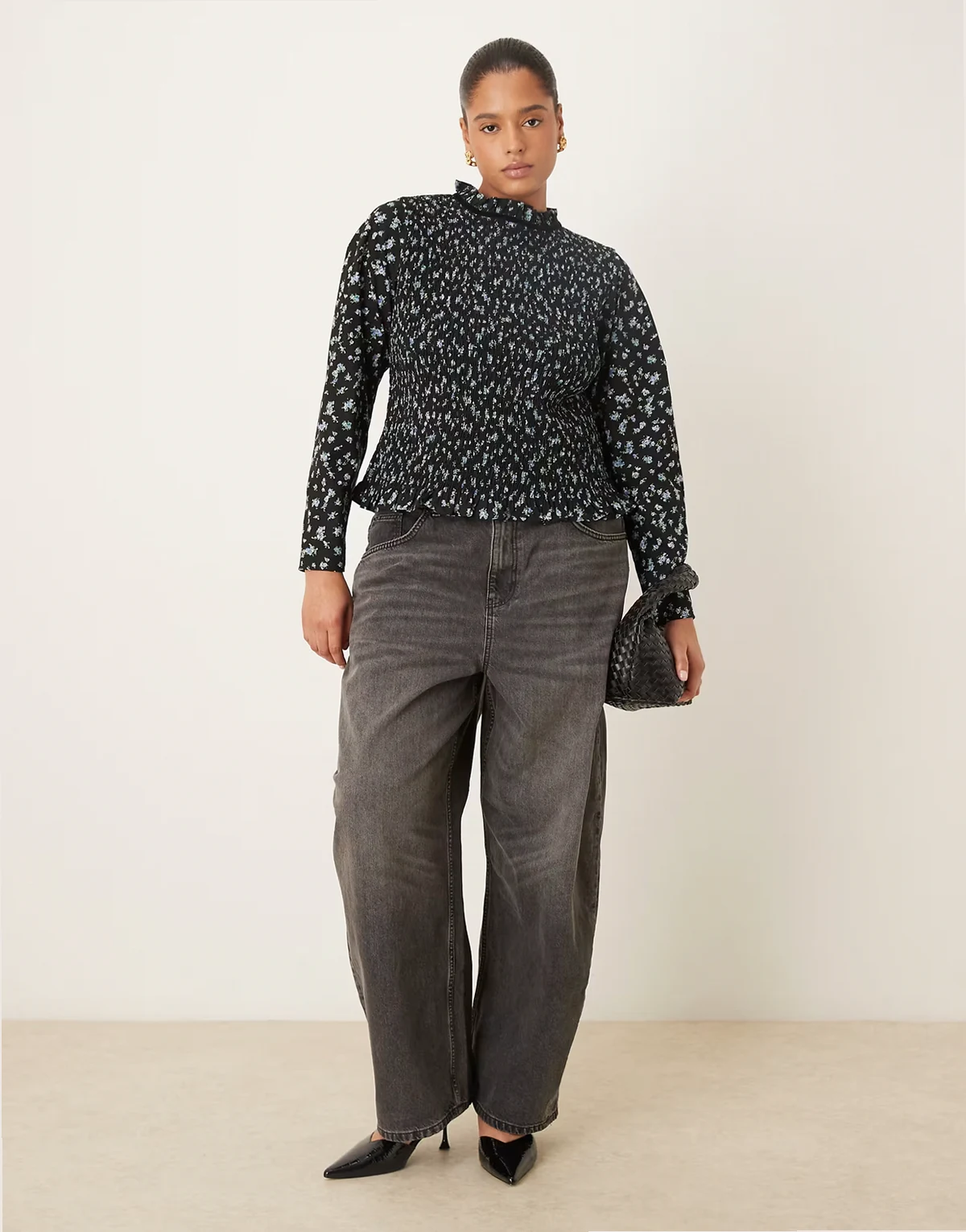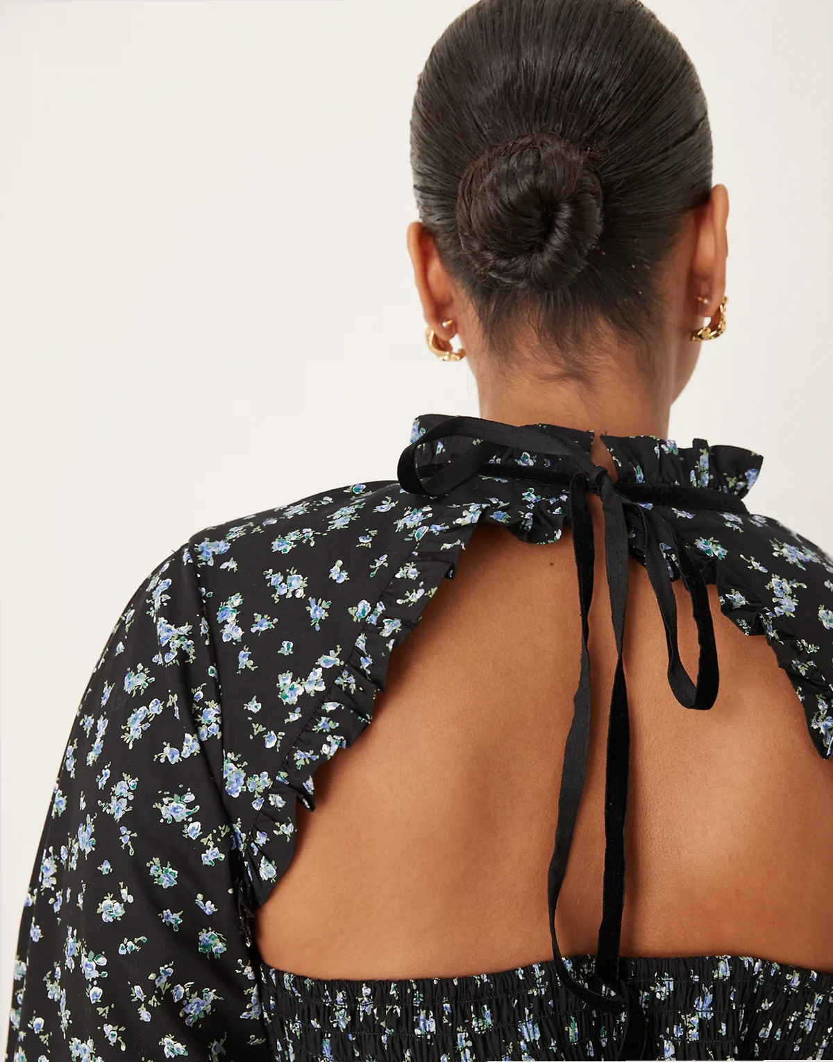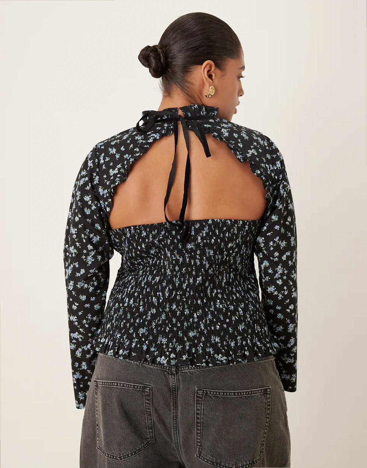 ASOS DESIGN Curve long sleeve smocked top with open back in floral print
