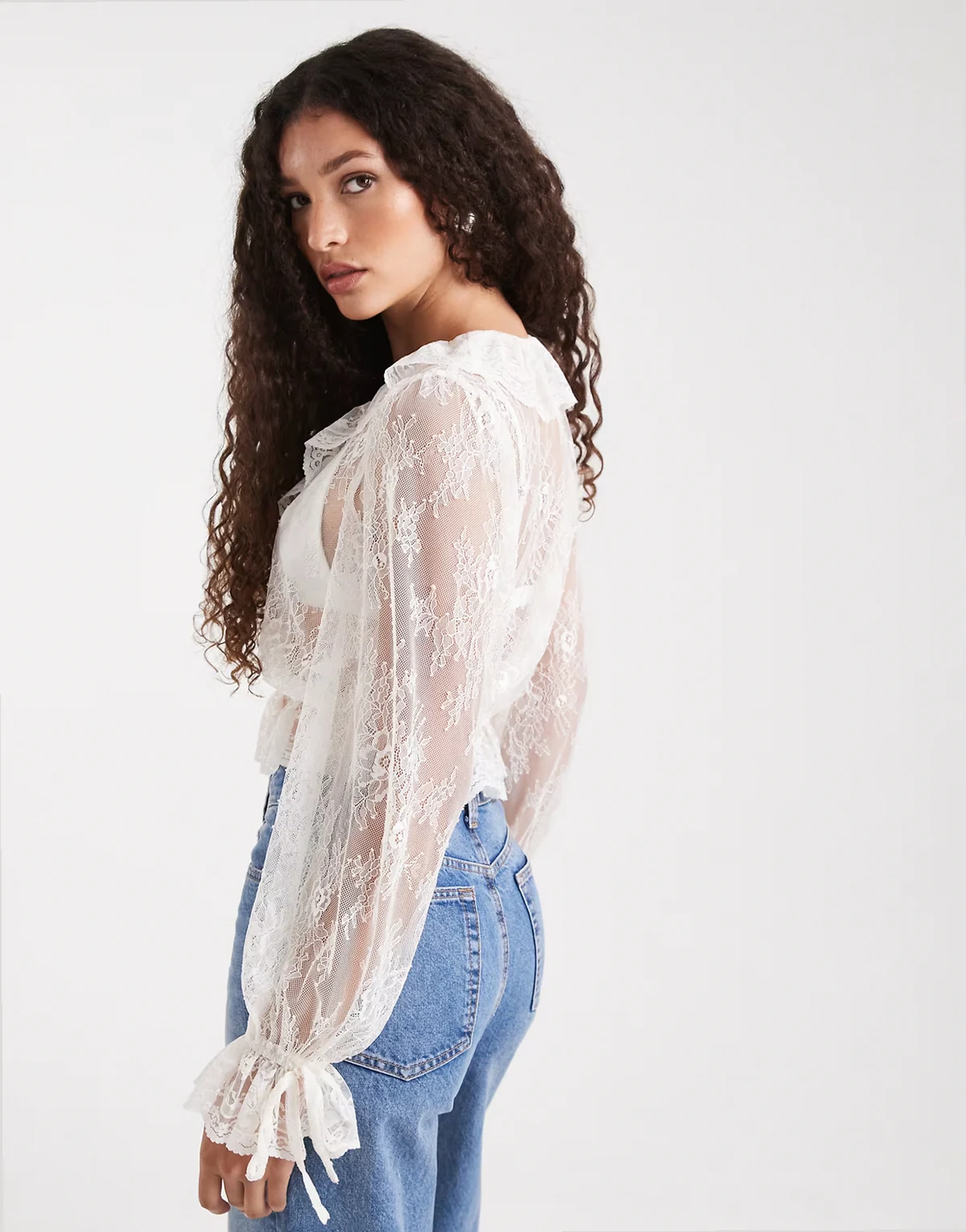 Off-White Puff-Sleeve Ruffle Crêpe De Chine Blouse