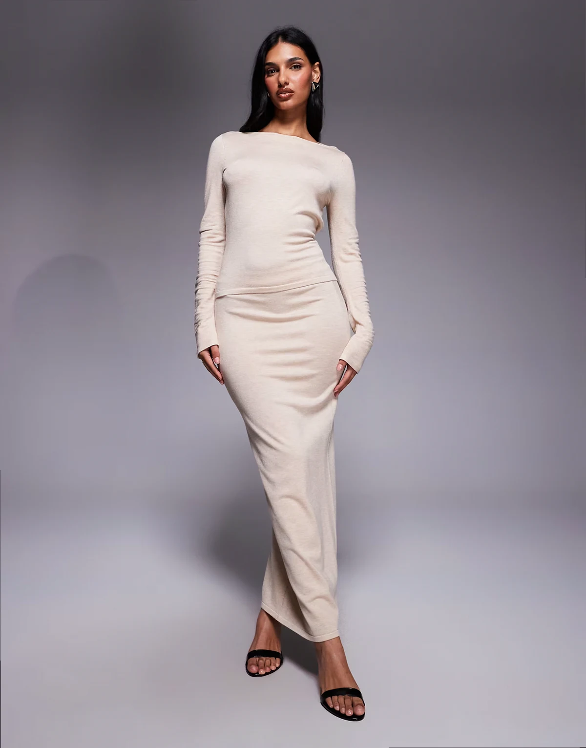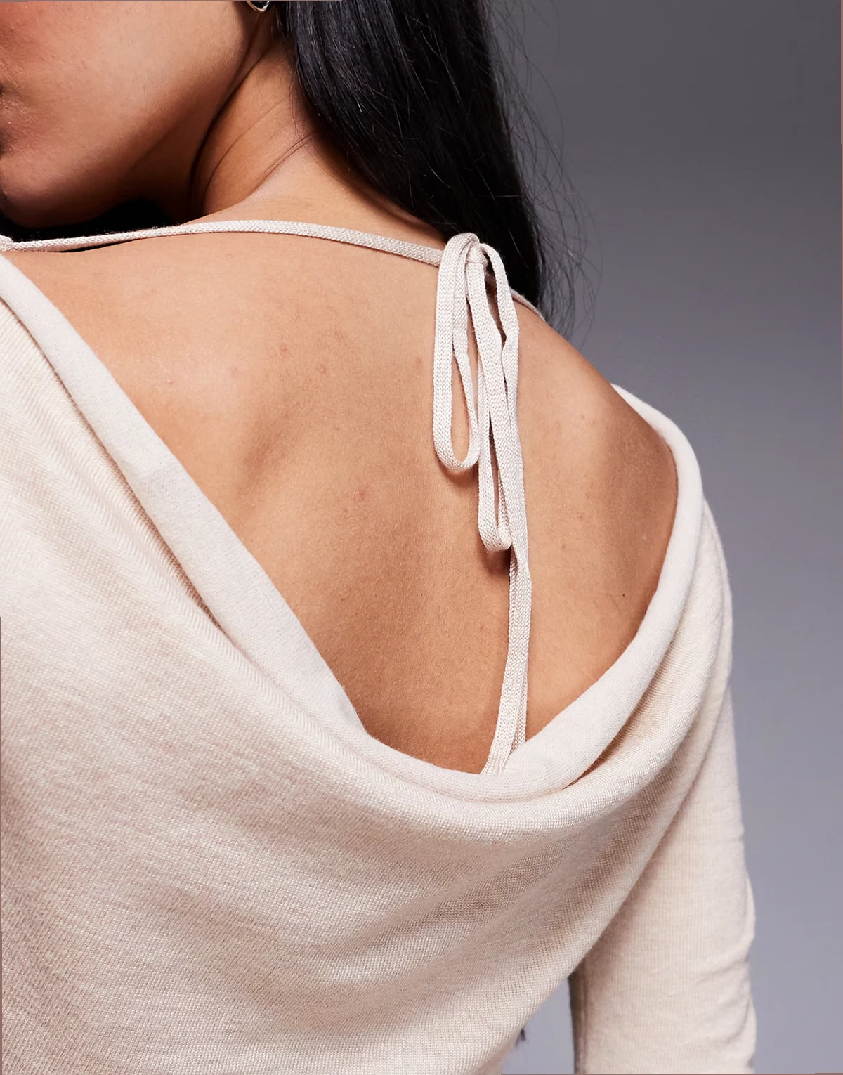 exclusive fine knit cowl tie back long sleeve top in oatmeal - part of a set