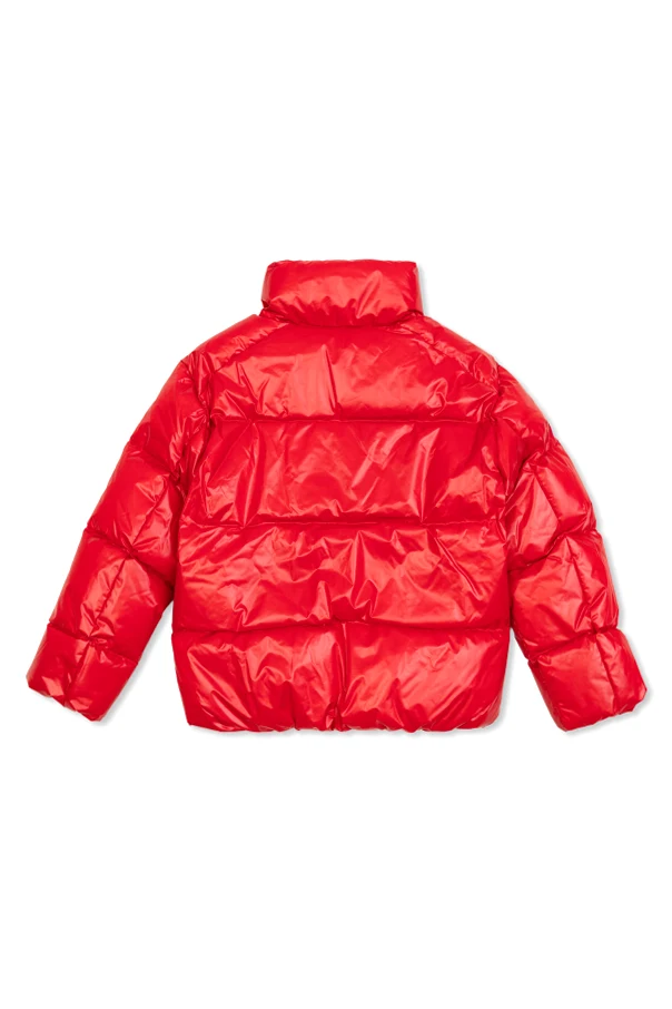 Elevated by a tall, protective turtleneck collar and finished with a striking, contrasting zipper—crowned with a distinctive star motif snap—this piece stands out as a testament to both function and flair. The understated, solid color design and the prominent logo at the front complete its modern allure, making it an essential for every adventurous young trendsetter.