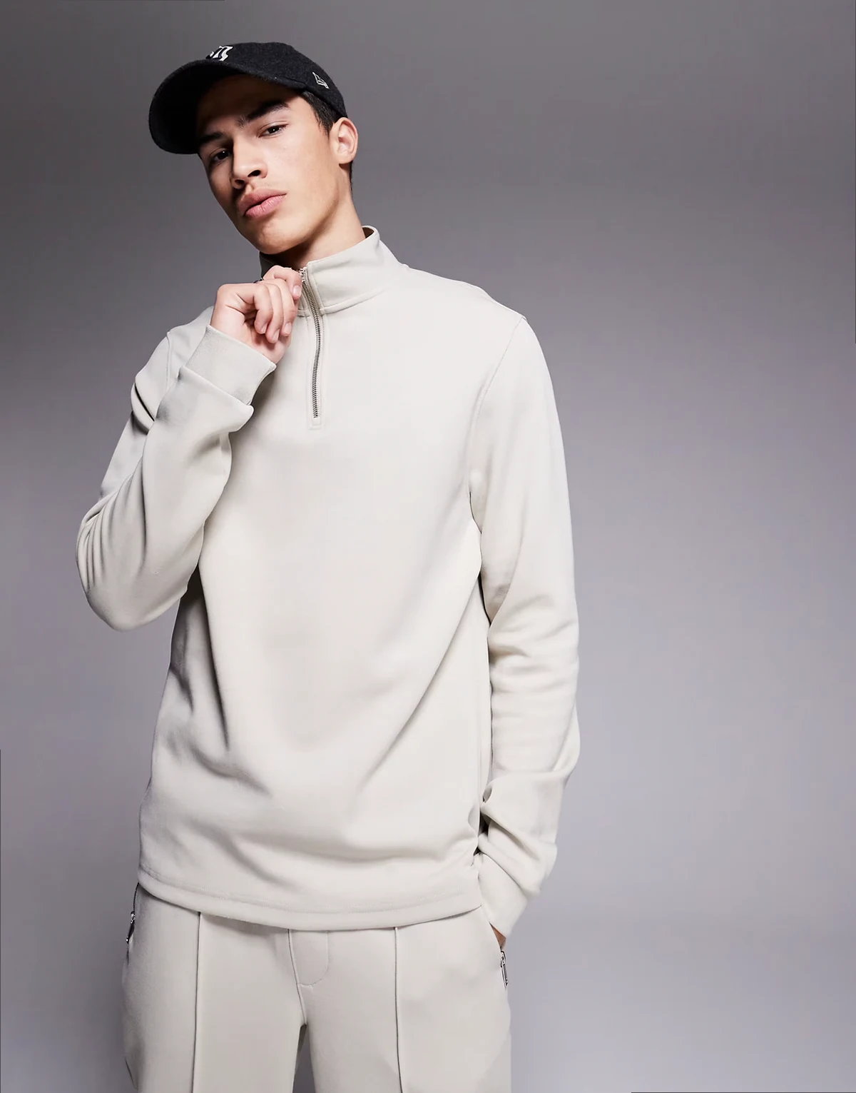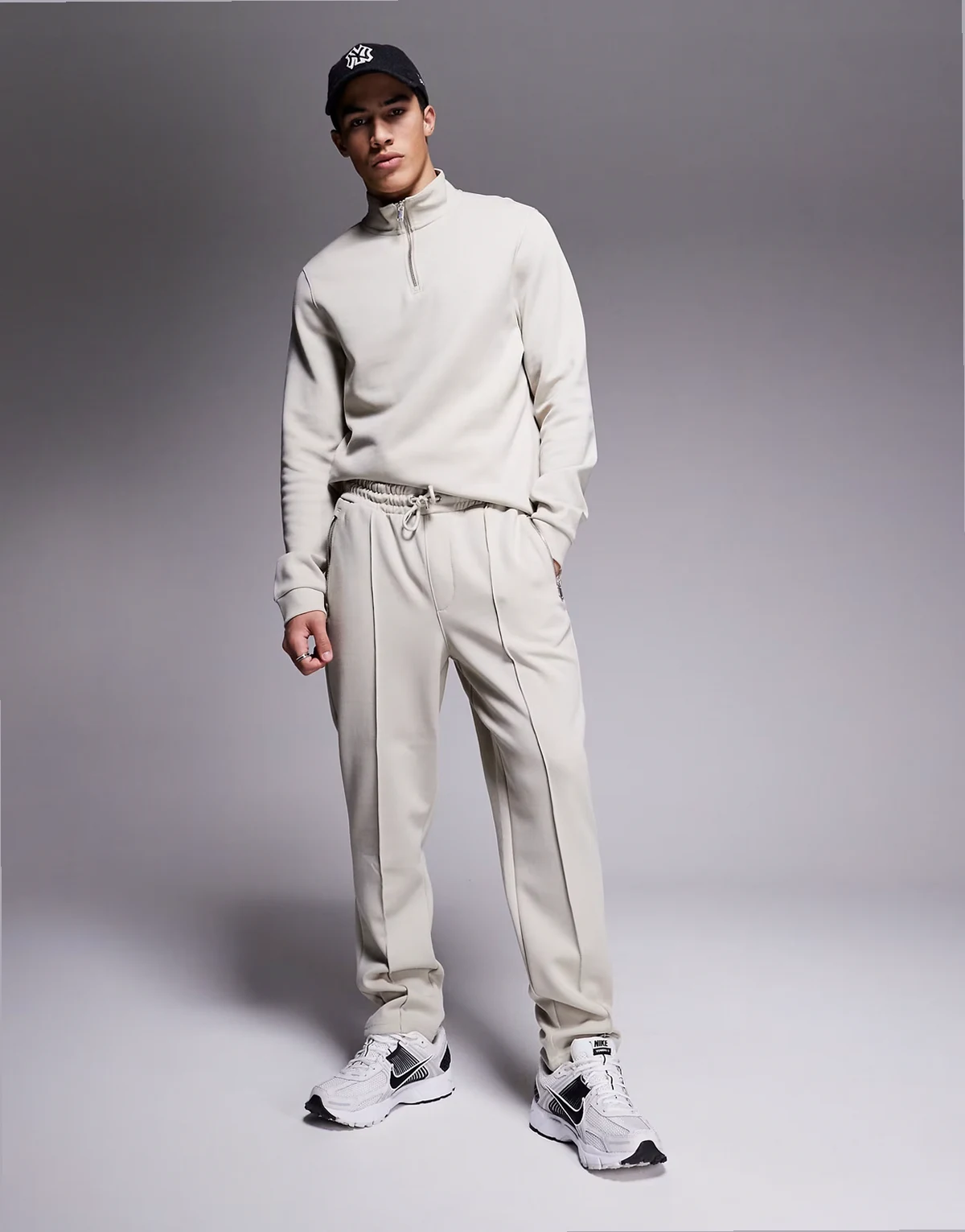 smart sweatpants and sweatshirt set in light gray