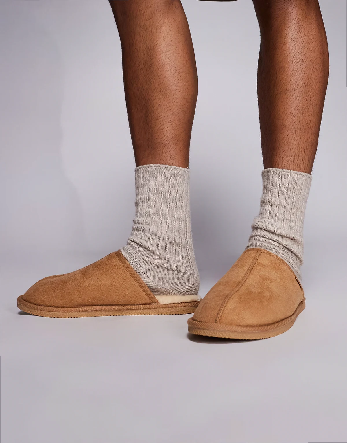 fleece lined mule slippers in light brown