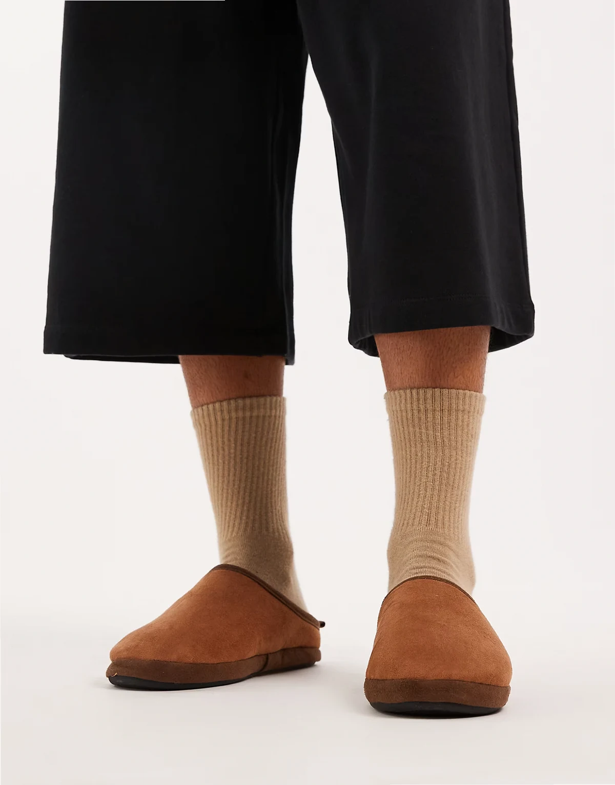 mule slippers in tan