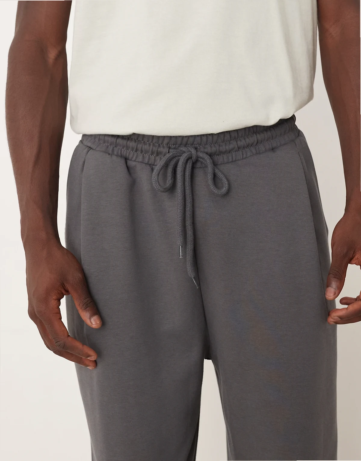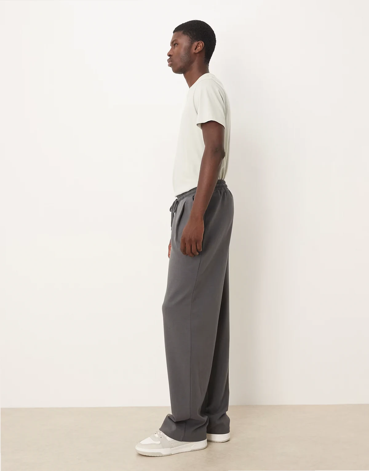 wide leg sweatpants with pleats in dark gray