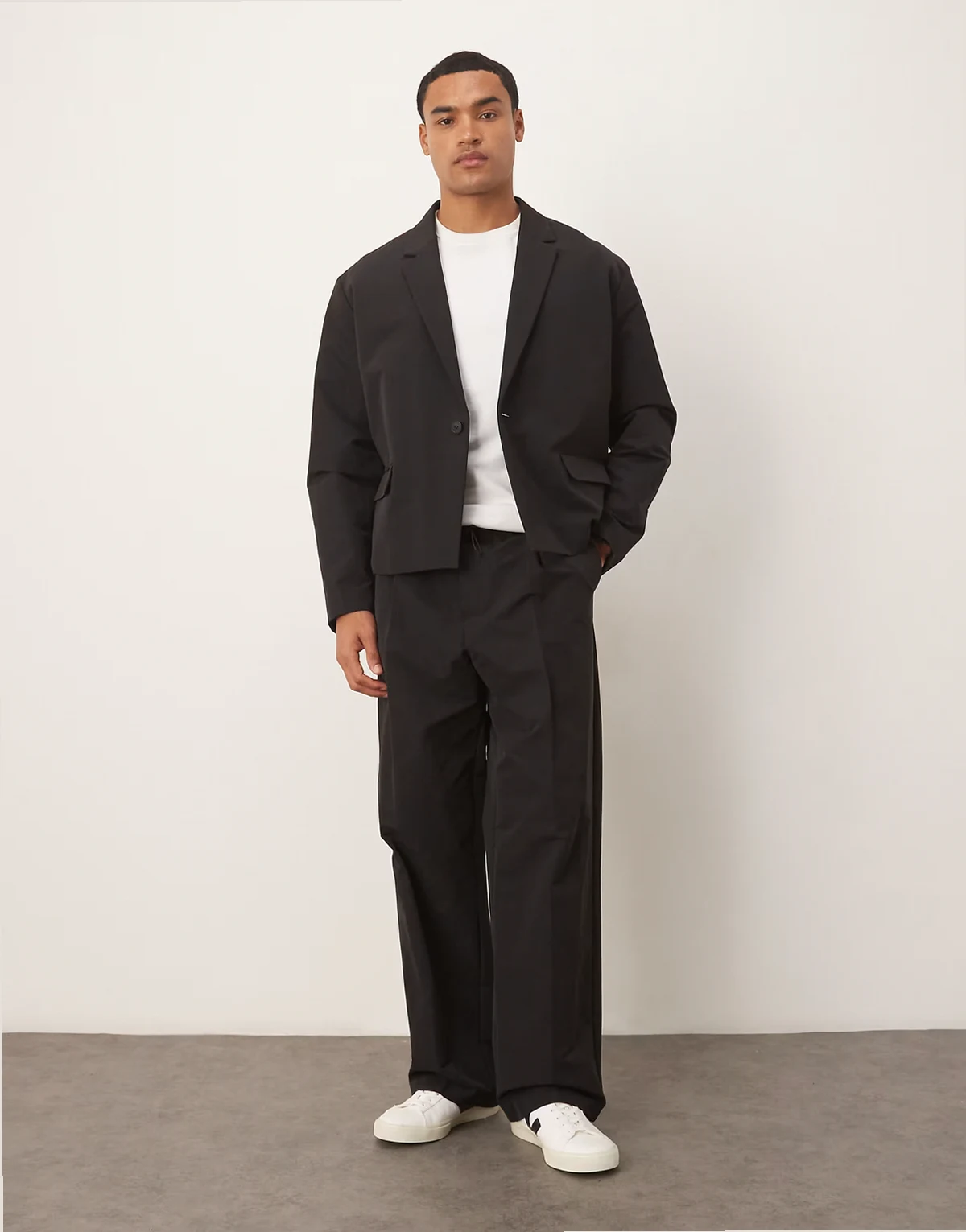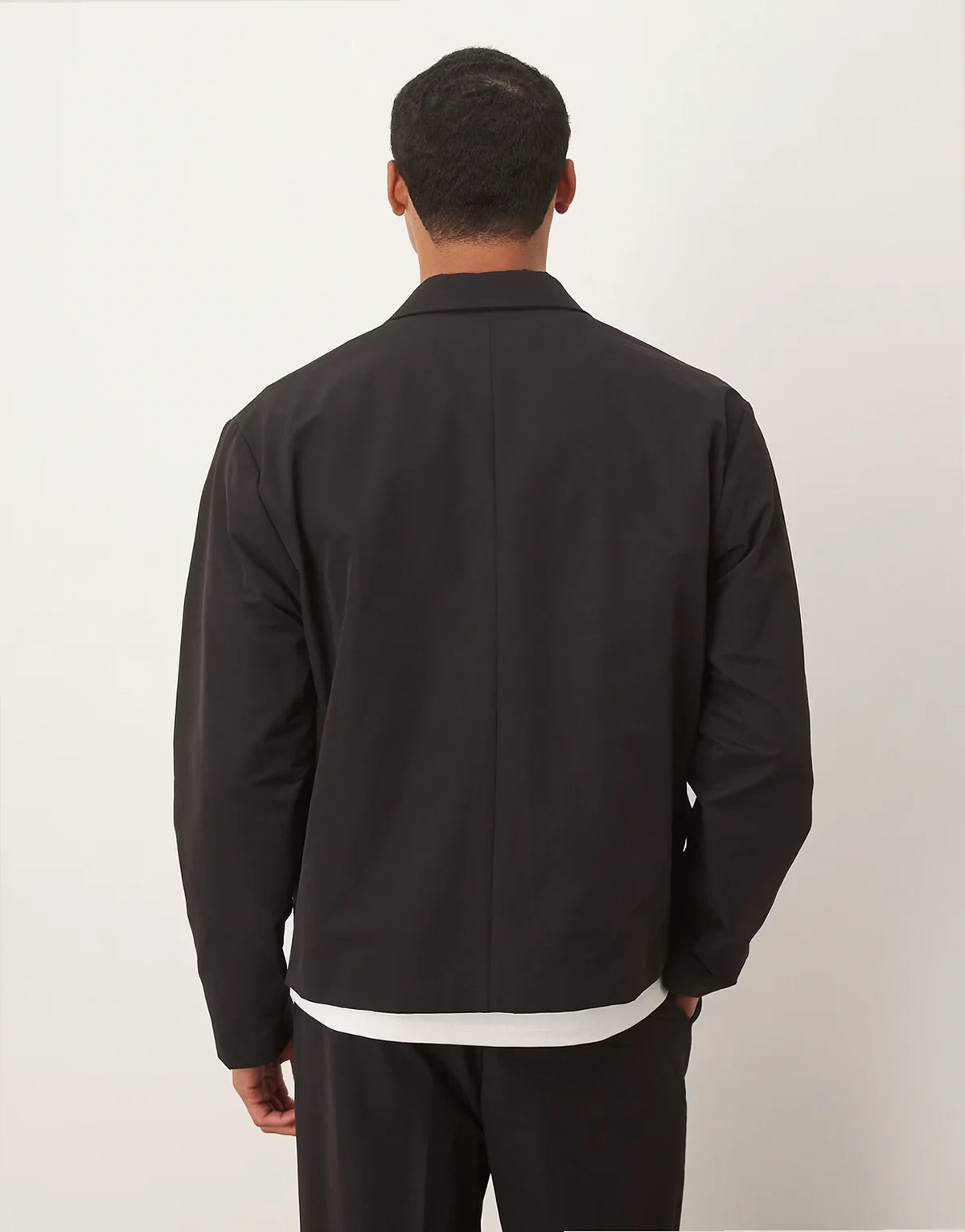boxy suit jacket in casual black tech fabric