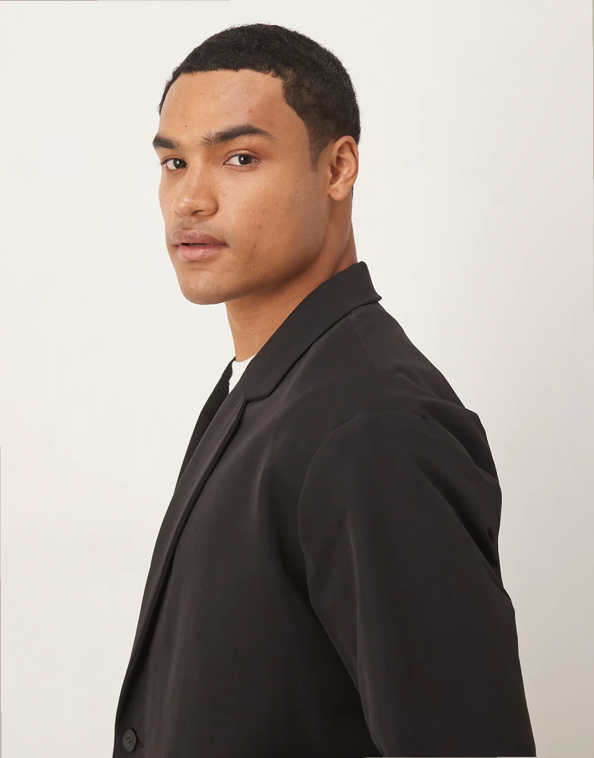 4. boxy suit jacket in casual black tech fabric