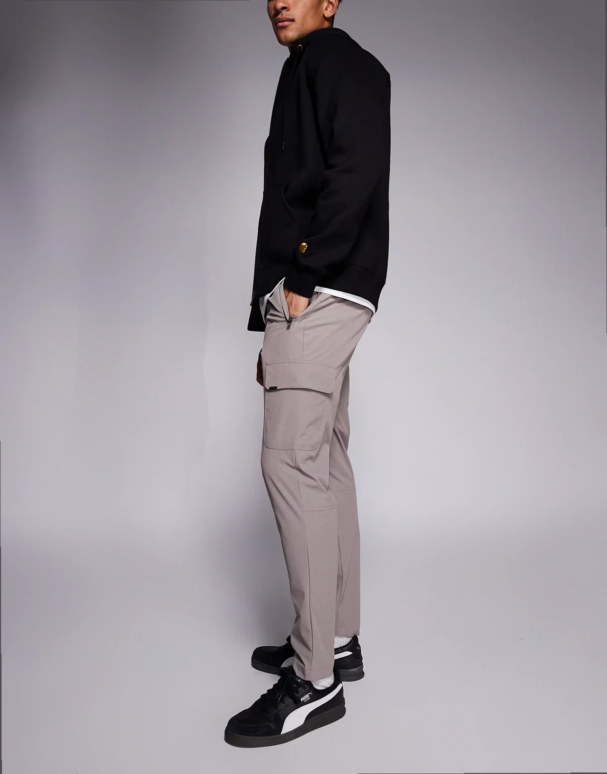 skinny cargo pants in dark brown