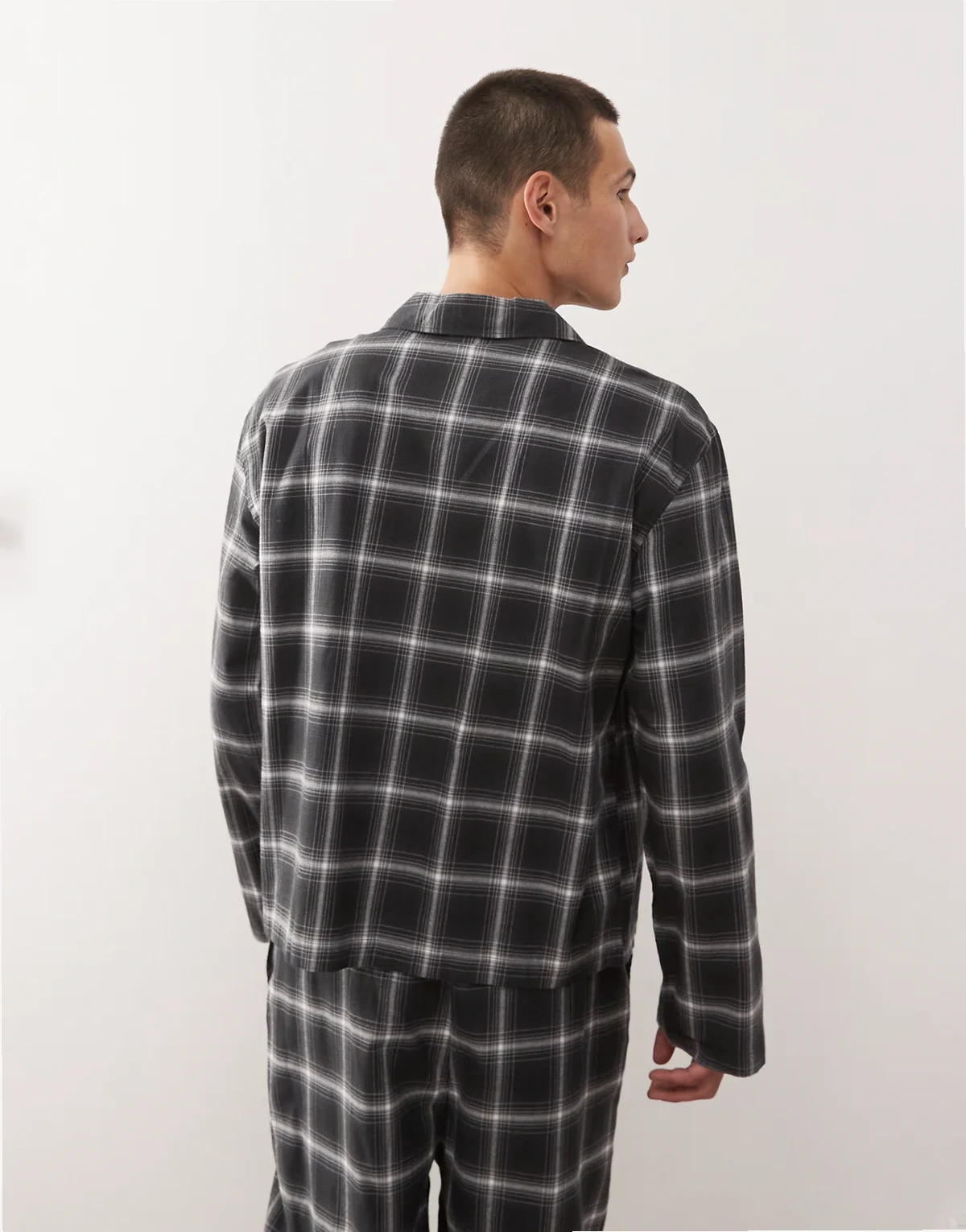 oversized flannel shirt in black, navy & white check - part of a set