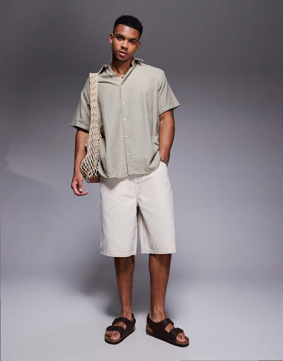 oversized short sleeve shirt in cream