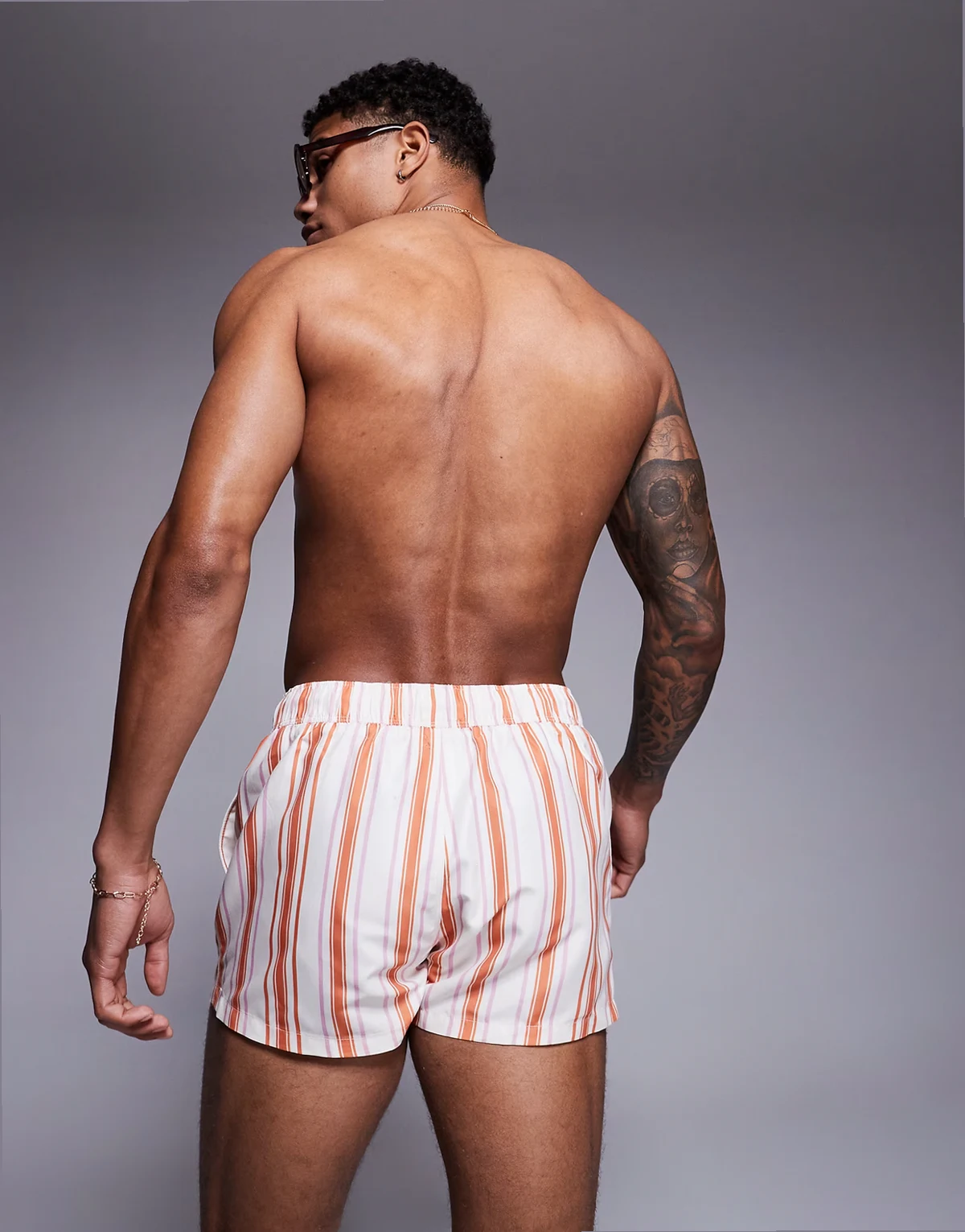 swim shorts in super-short length in white and orange stripe