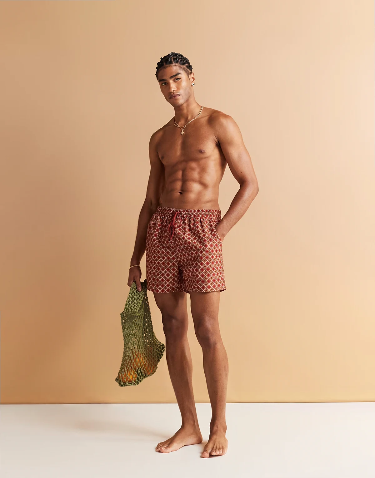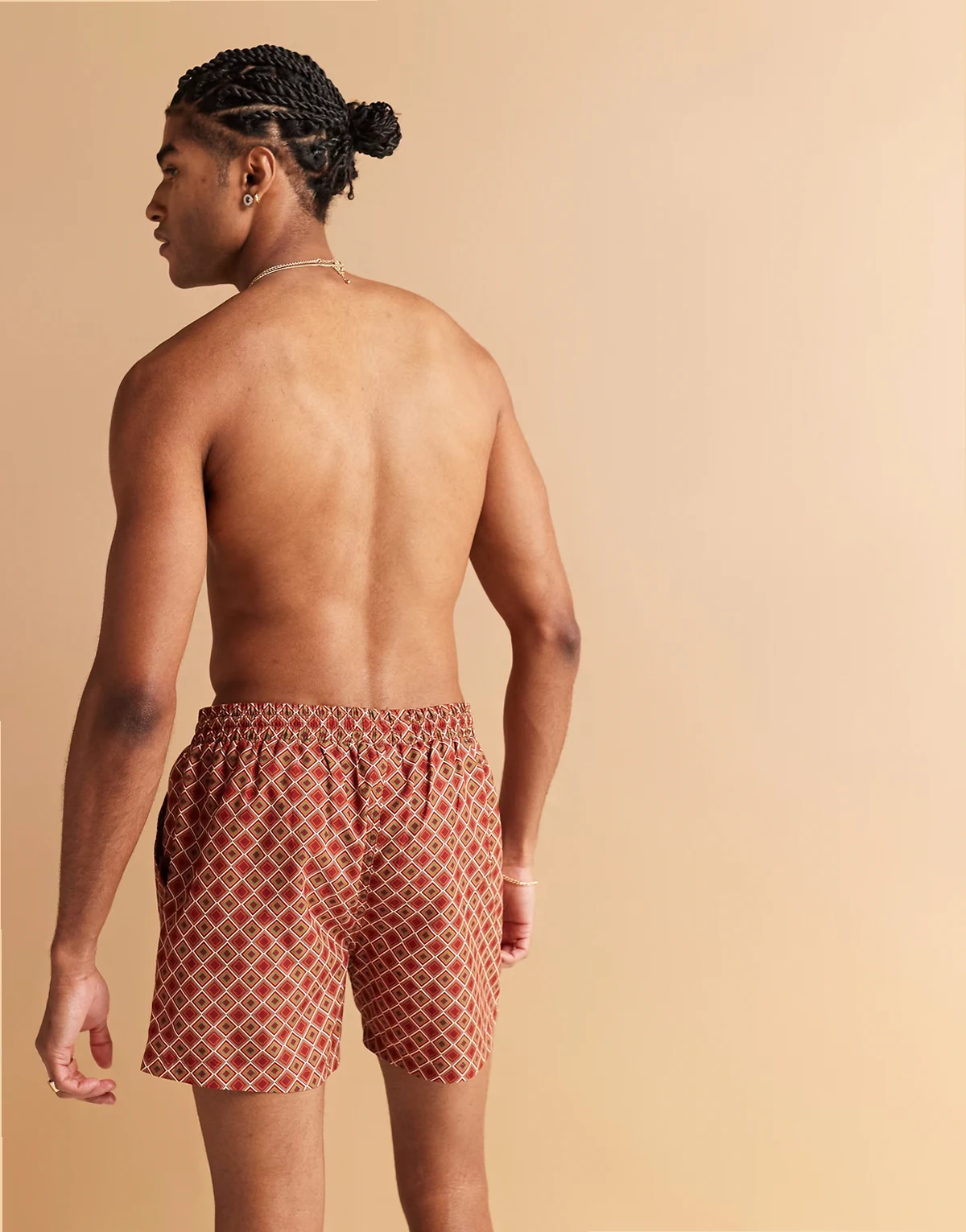 geo print swim shorts in rust