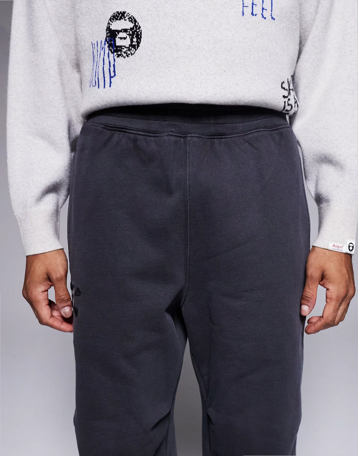 Aape by A Bathing Ape x Erased loose fit heavyweight jersey sweatpants in washed black
