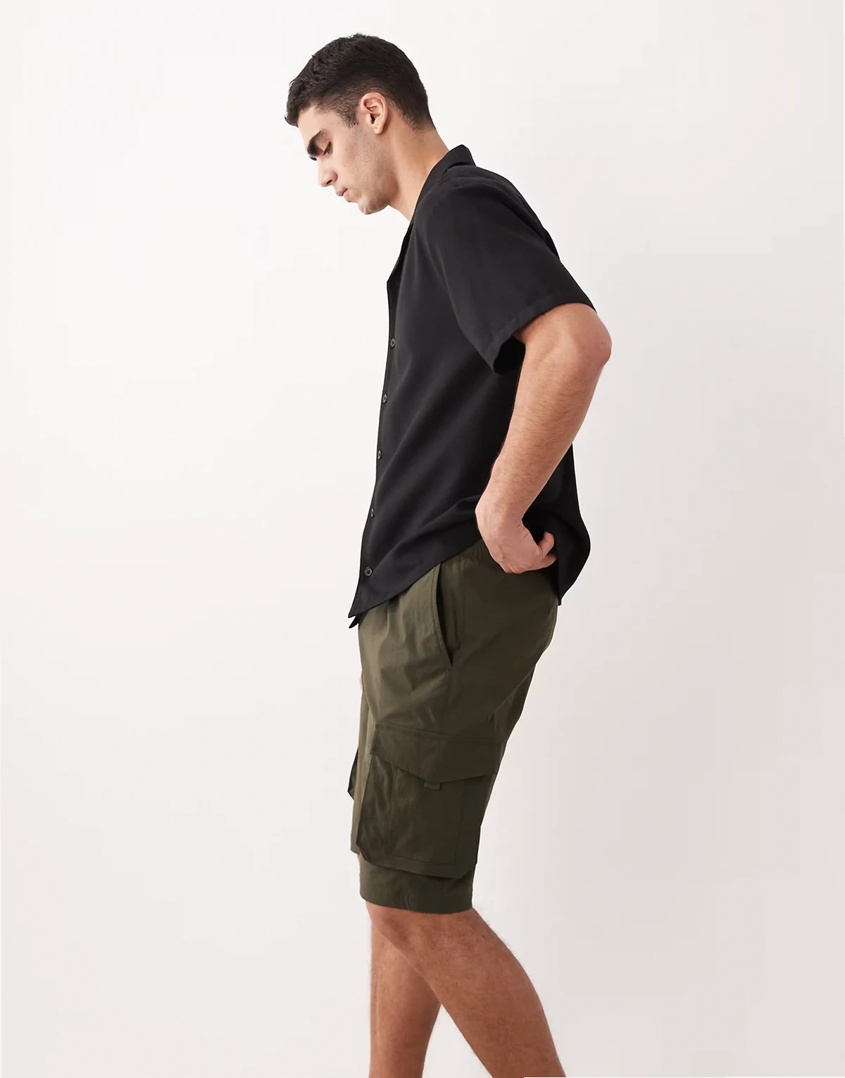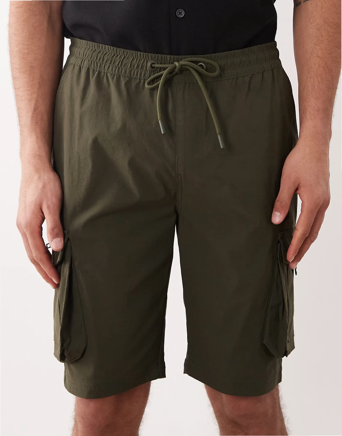 cargo shorts with drawstring waist in khaki