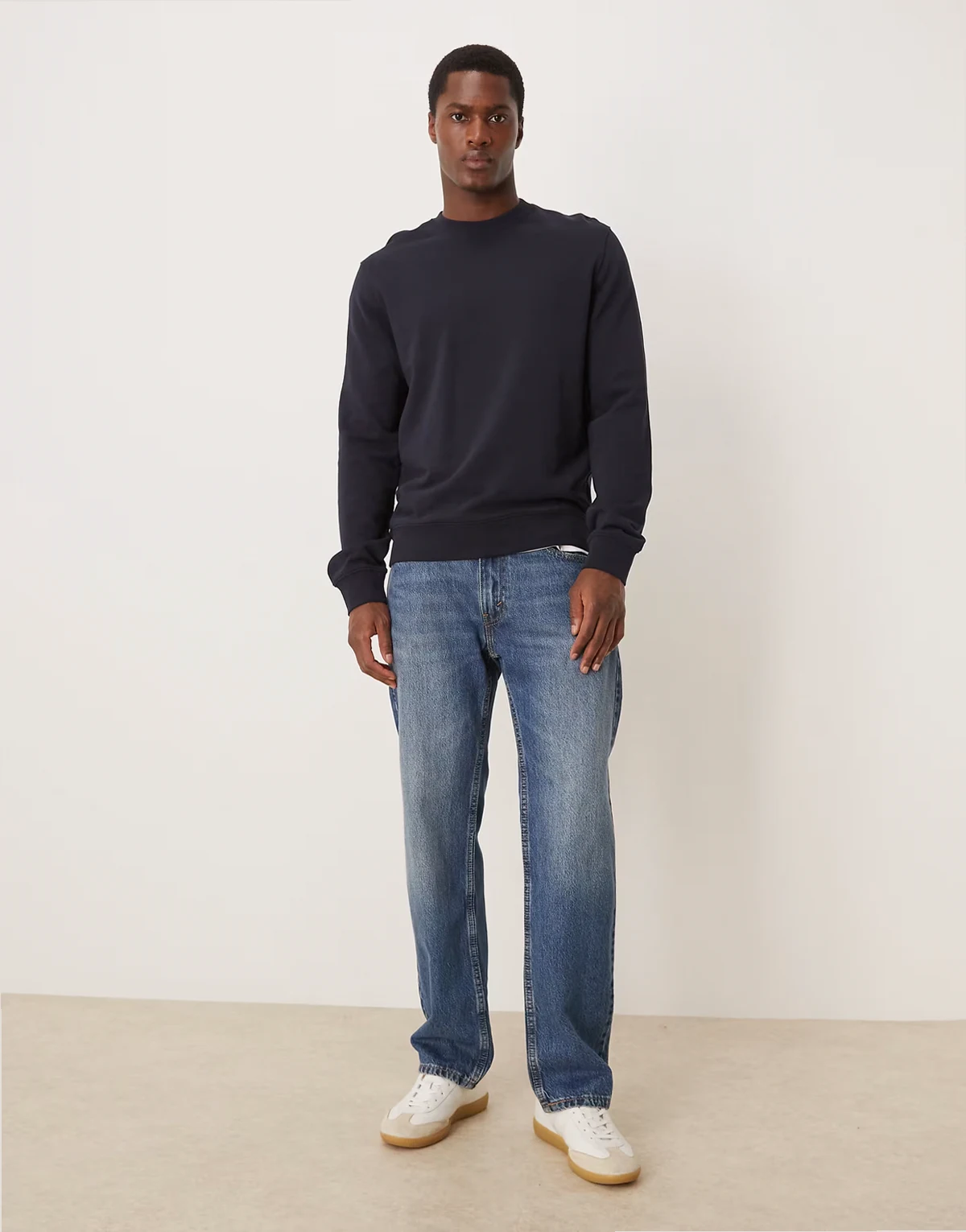 minimal jersey sweatshirt with crew neck in navy