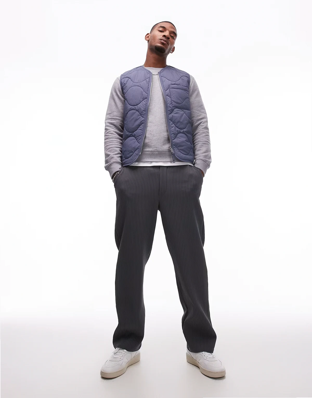 quilted vest with zip front in blue