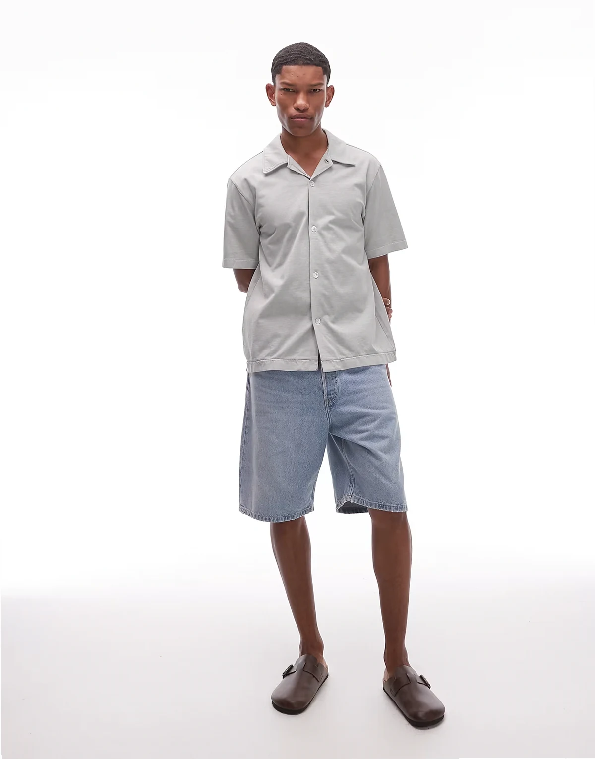 mid waist regular fit denim shorts in mid blue wash