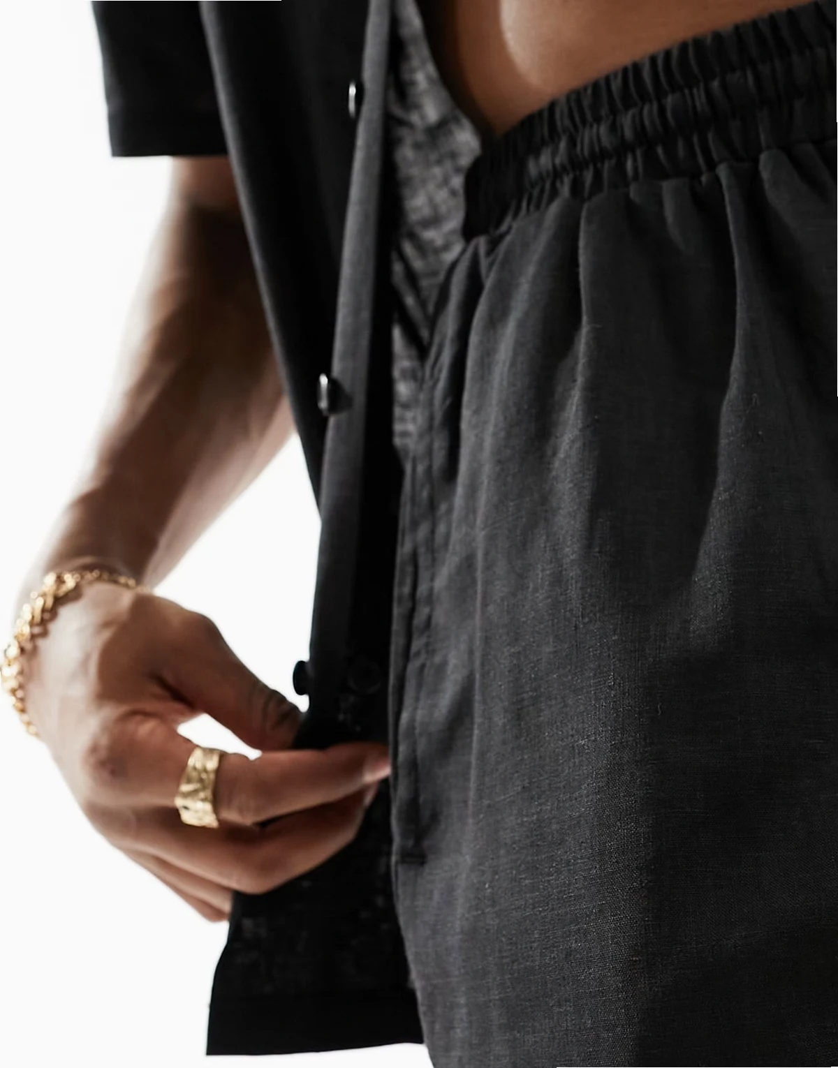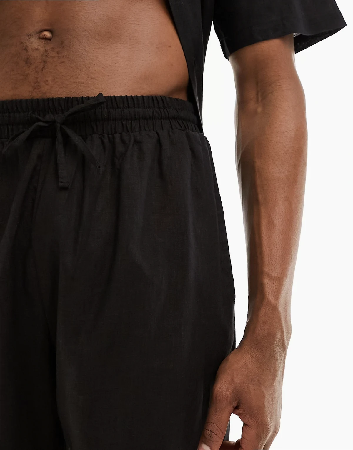 linen blend beach shorts in black