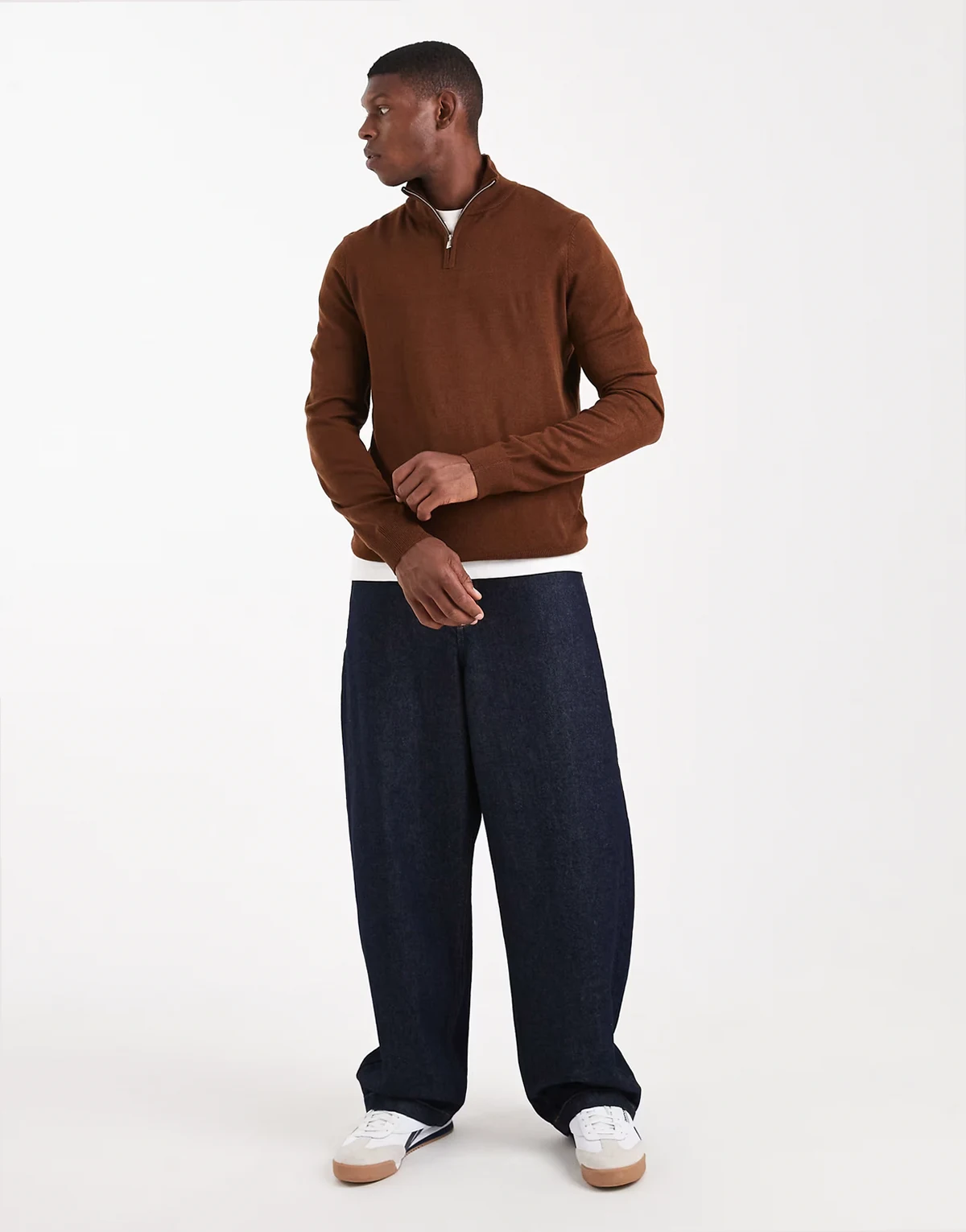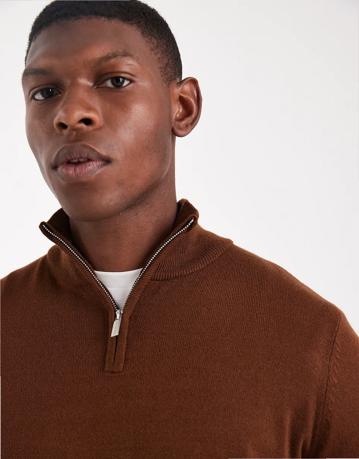 quarter zip sweater in brown
