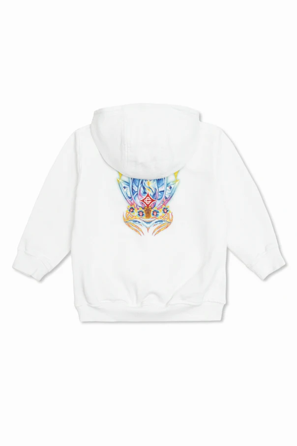 Discover the refined allure of Casablanca Kids with this white unisex hoodie , expertly crafted for discerning young trendsetters. This classic silhouette features a relaxed fit, long sleeves, and finely ribbed cuffs and hem for exceptional comfort. The luxuriously soft cotton fabric assures a delicate touch against the skin, perfect for elevated everyday wear.
