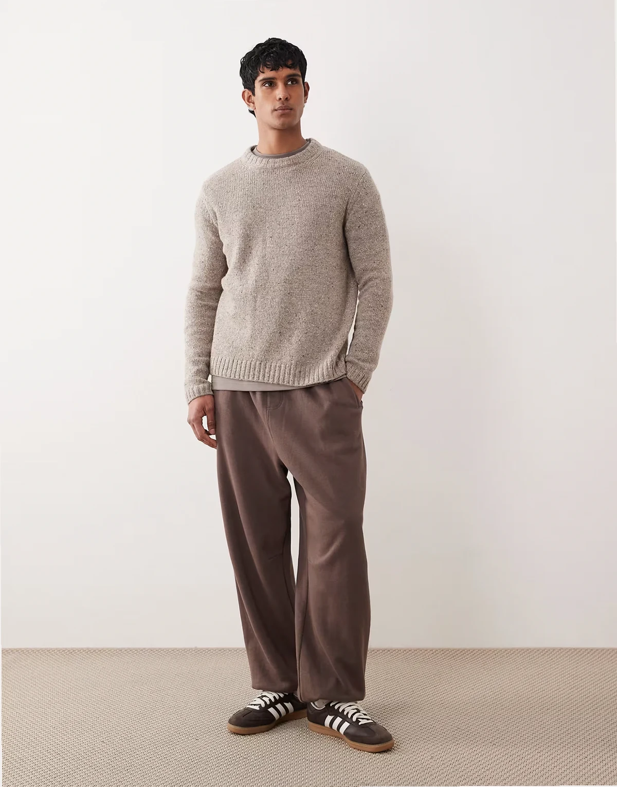 wool/alpaca blend crew neck relaxed fit sweater in beige