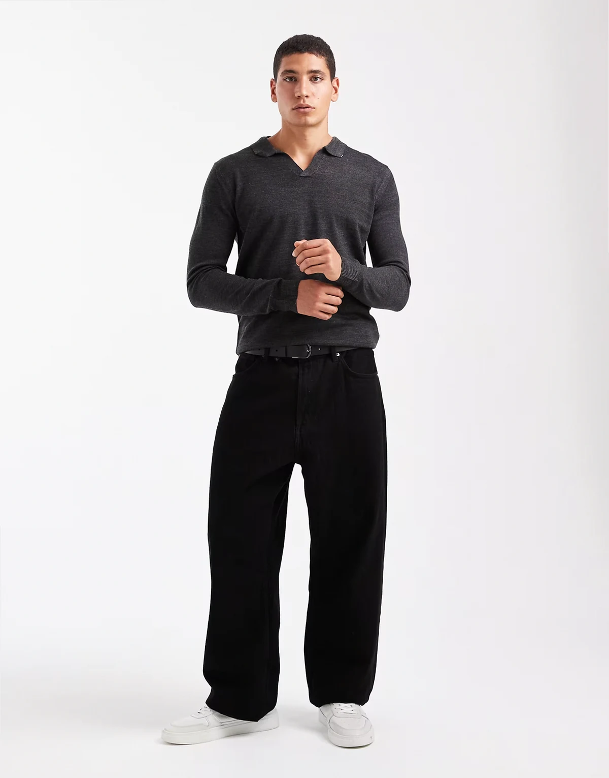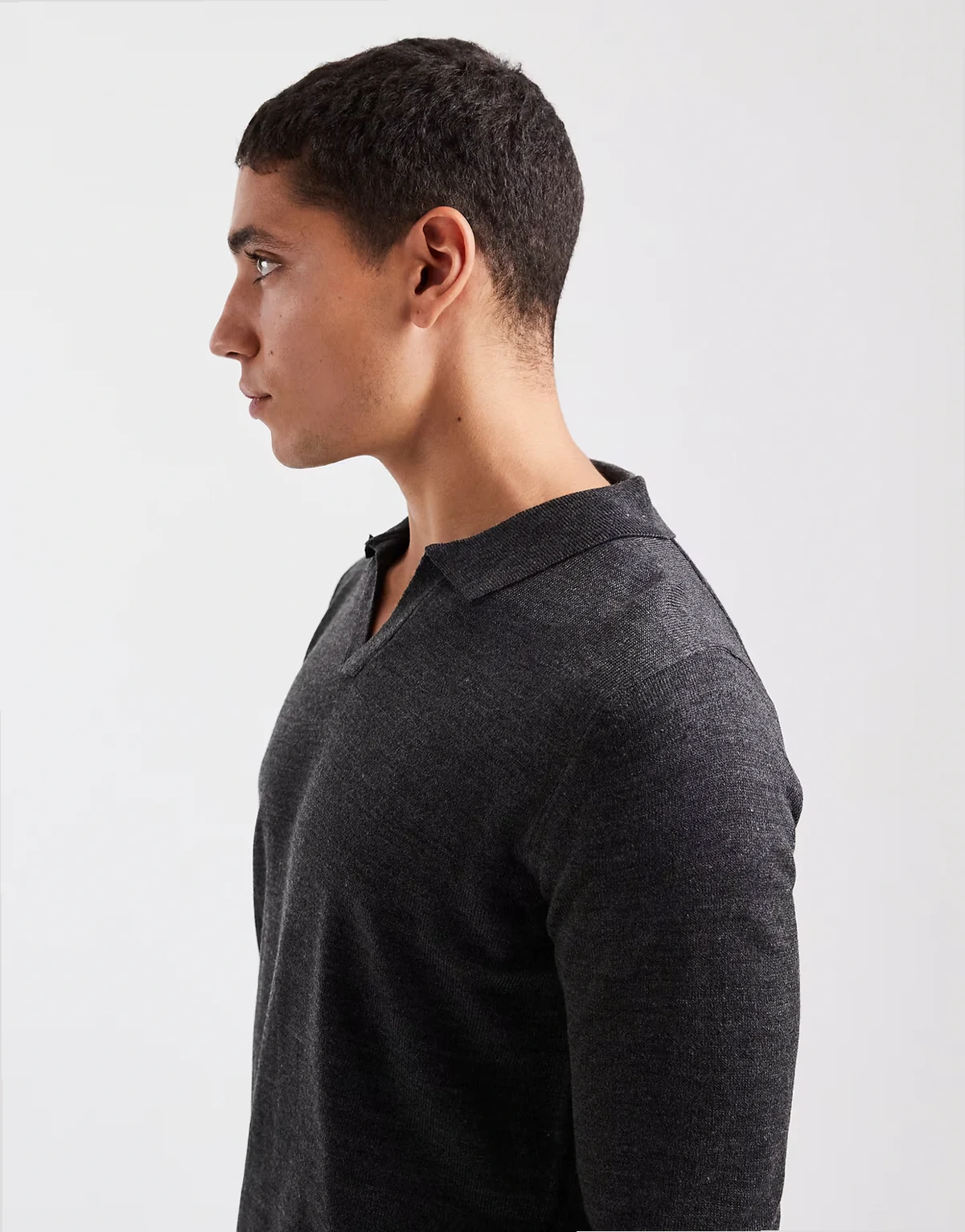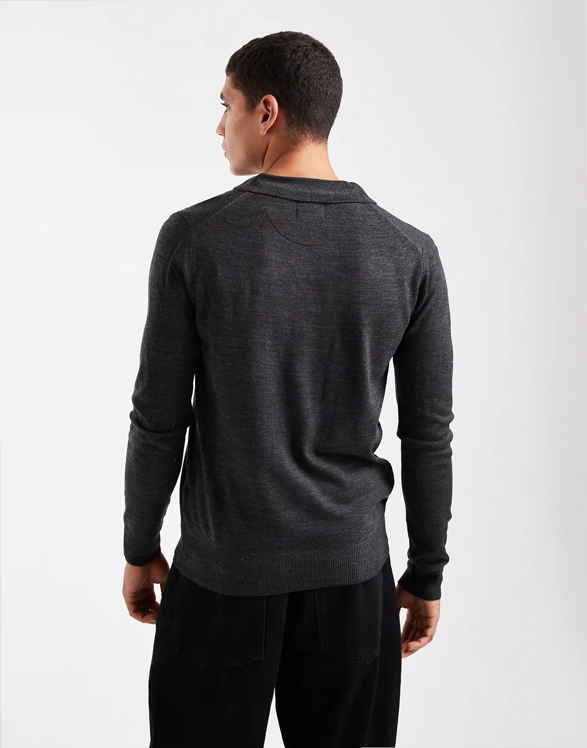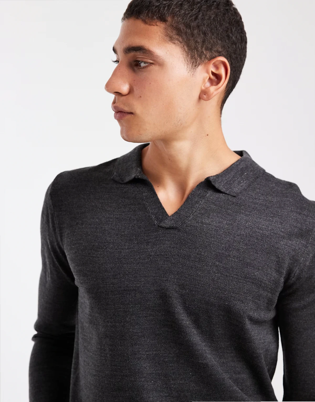 trophy collar knit sweater in charcoal gray