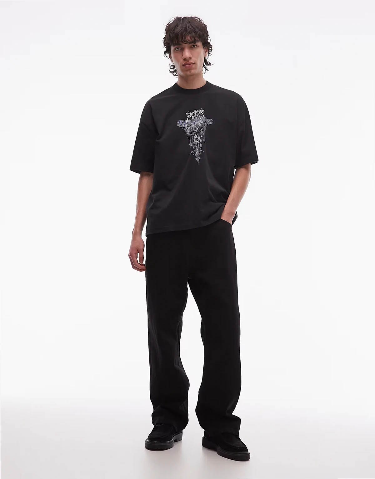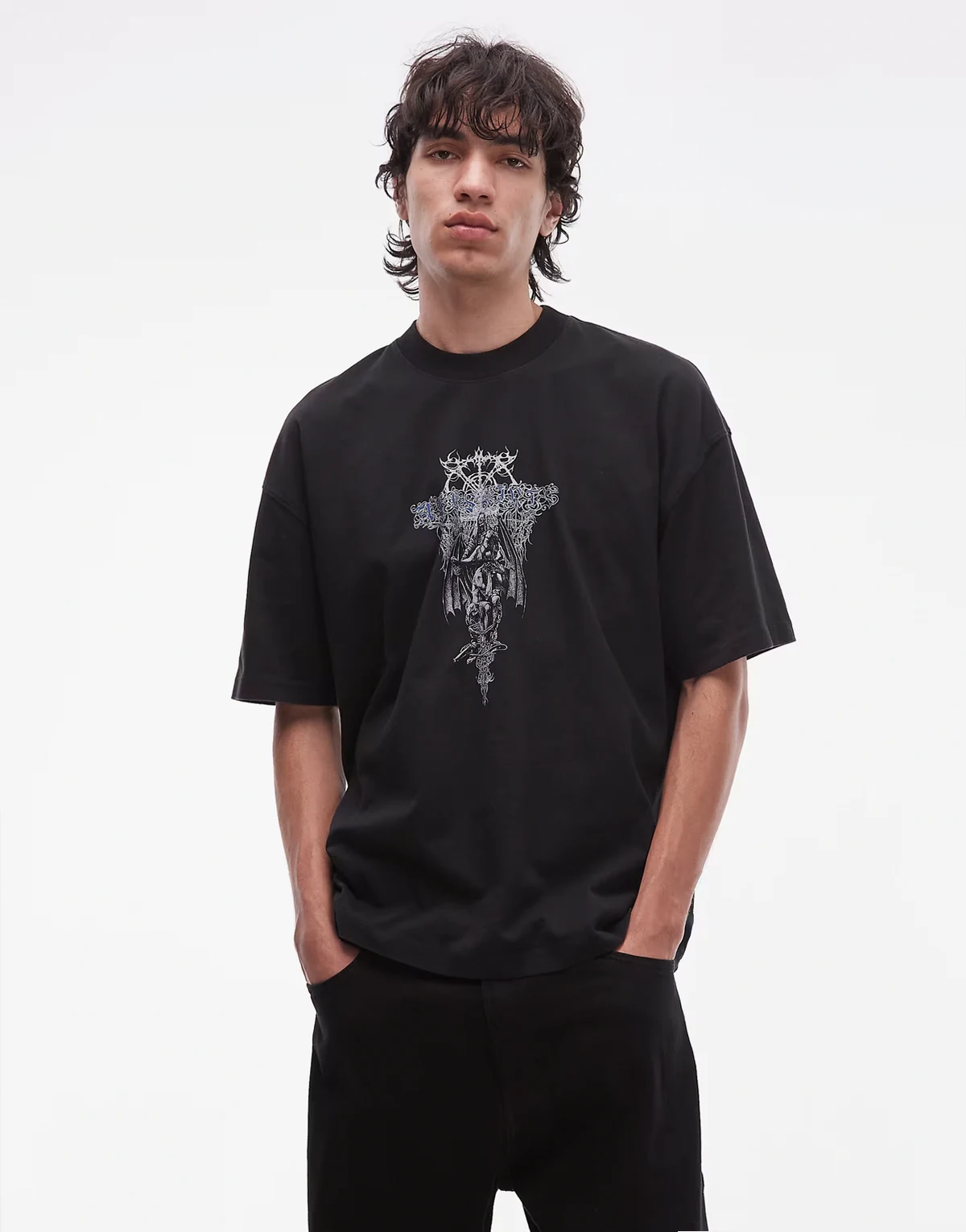 swords graphic T-shirt in washed black