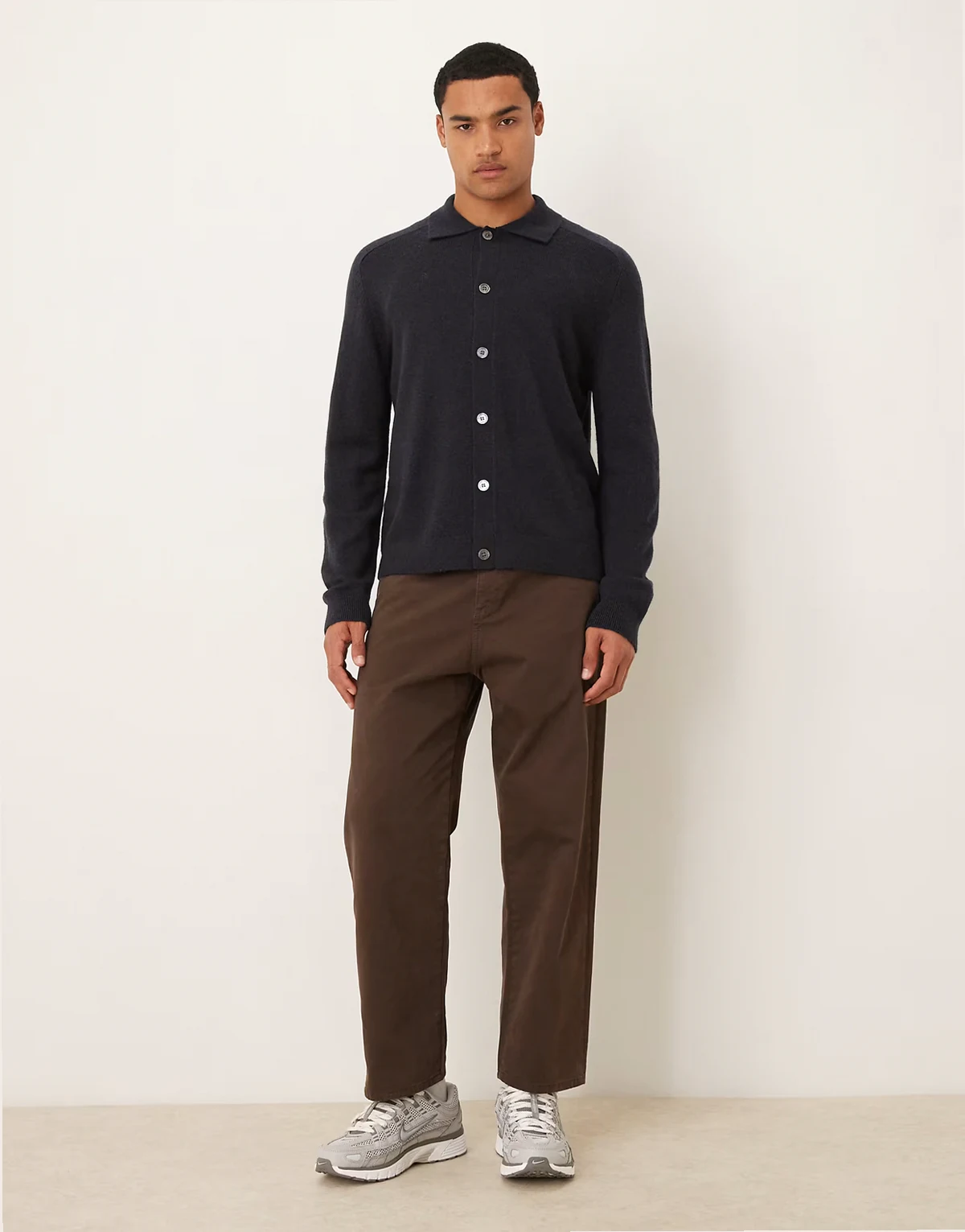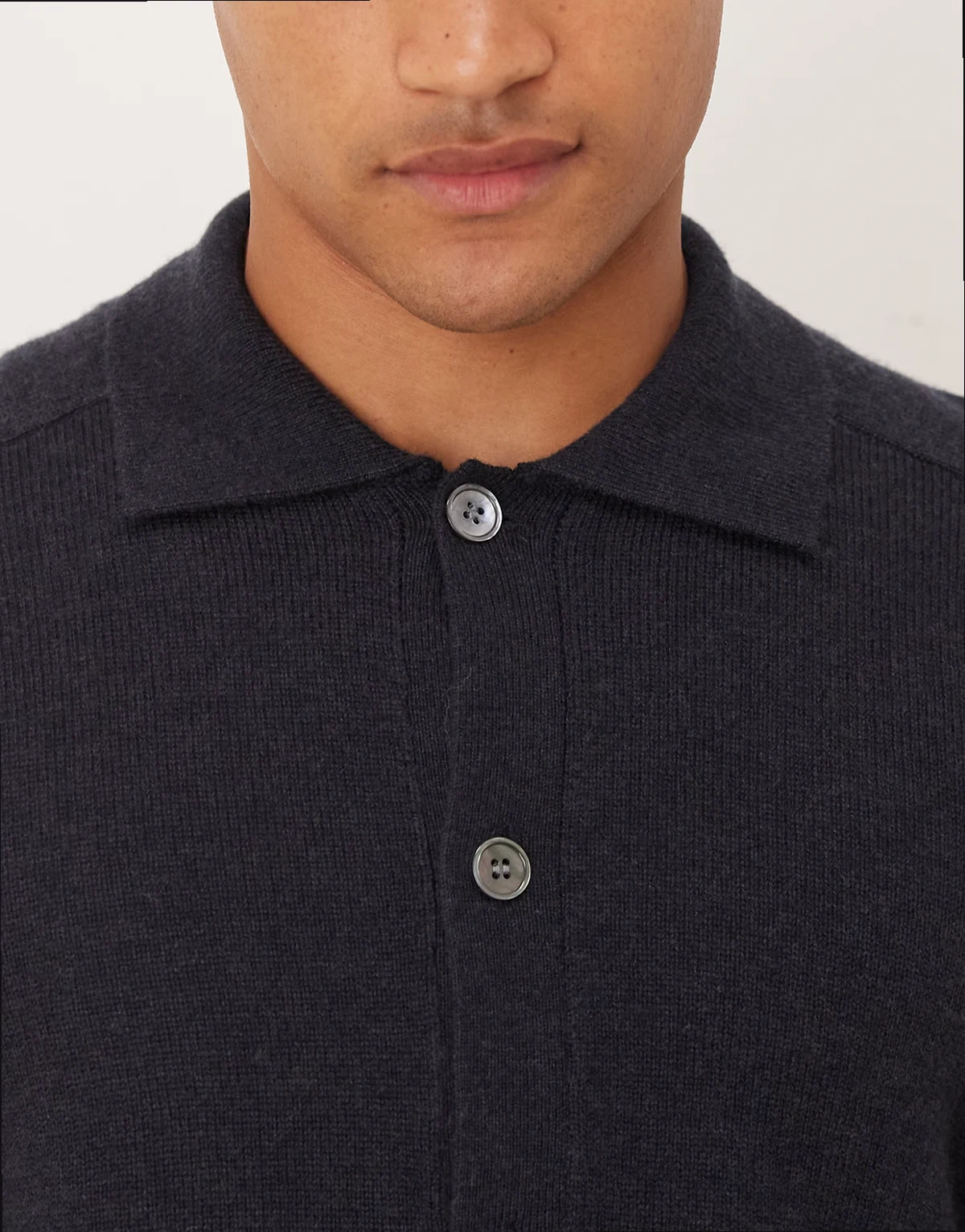 pure wool cardigan with button front and polo collar in navy blue