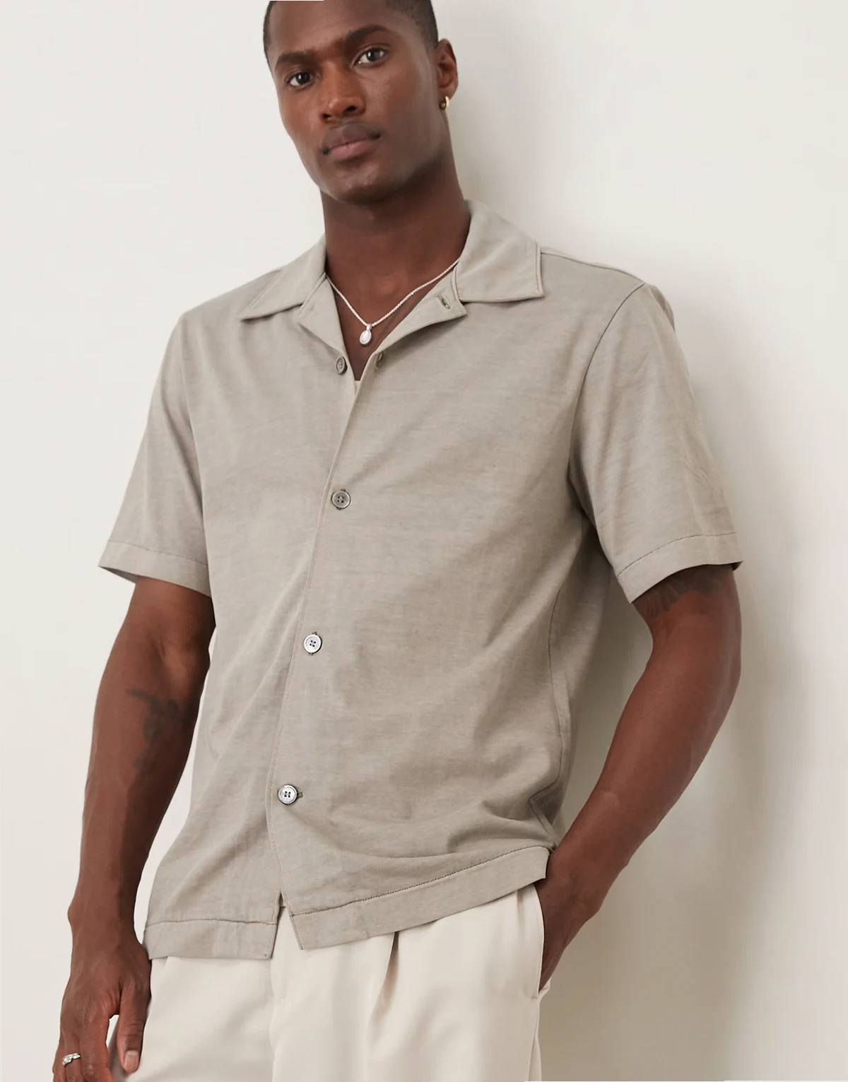 pure cotton heavyweight jersey short sleeve shirt in gray