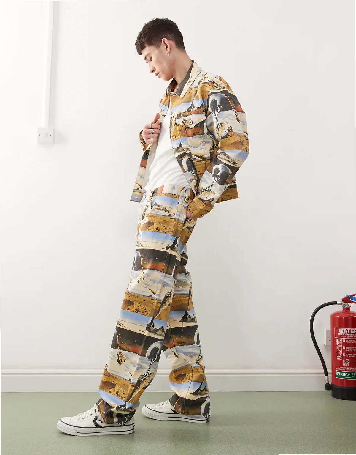 dreamscape all over printed straight leg denim jeans in multi - part of a set