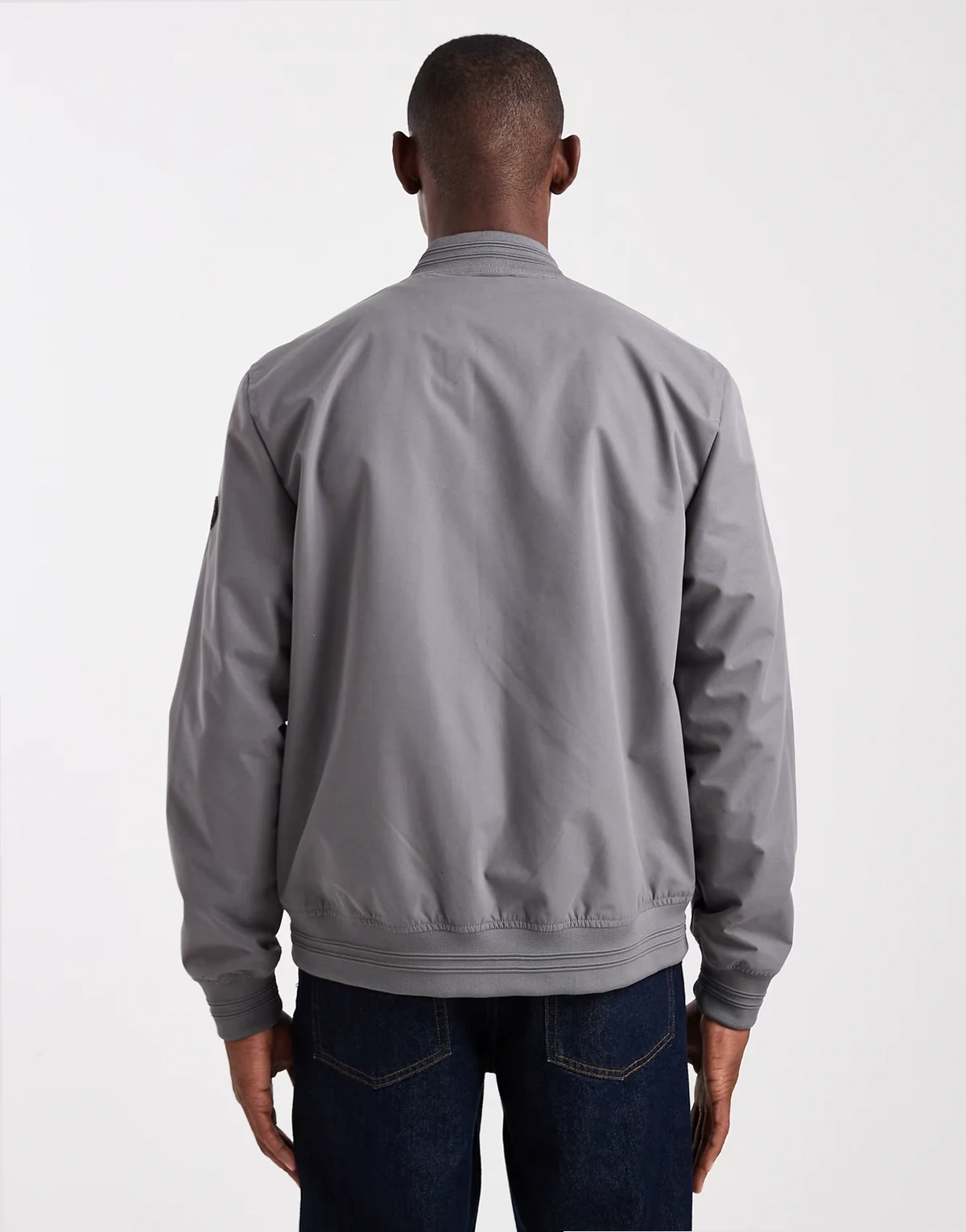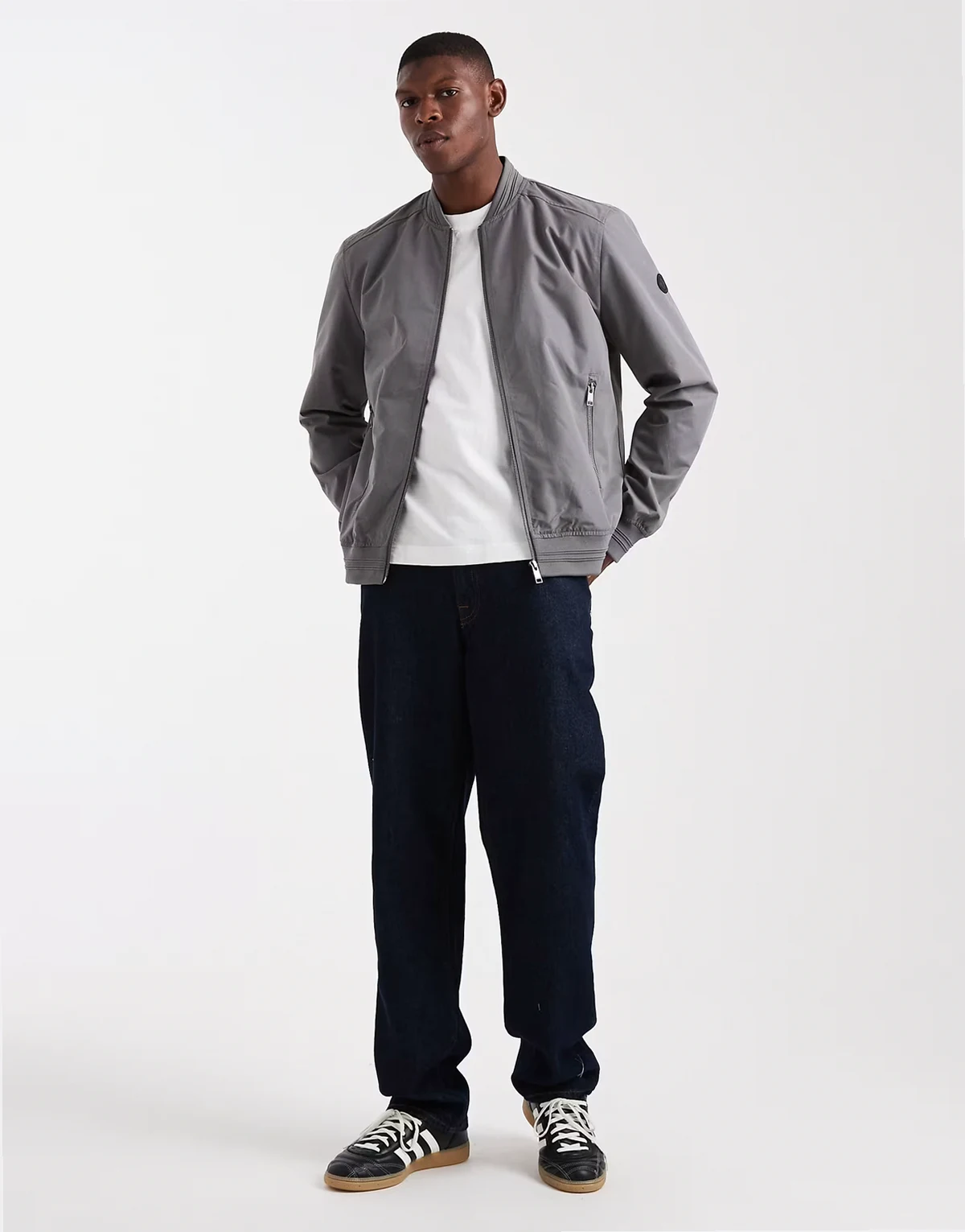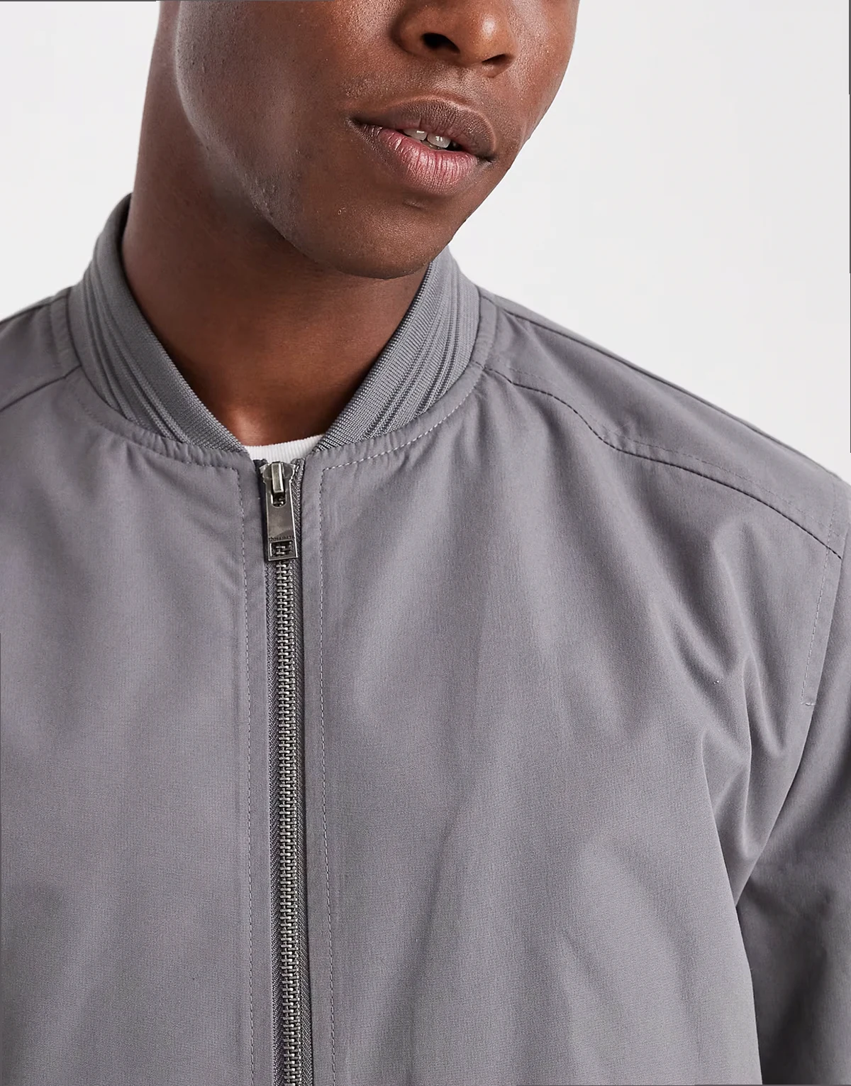 zip front bomber jacket with pockets in slate gray