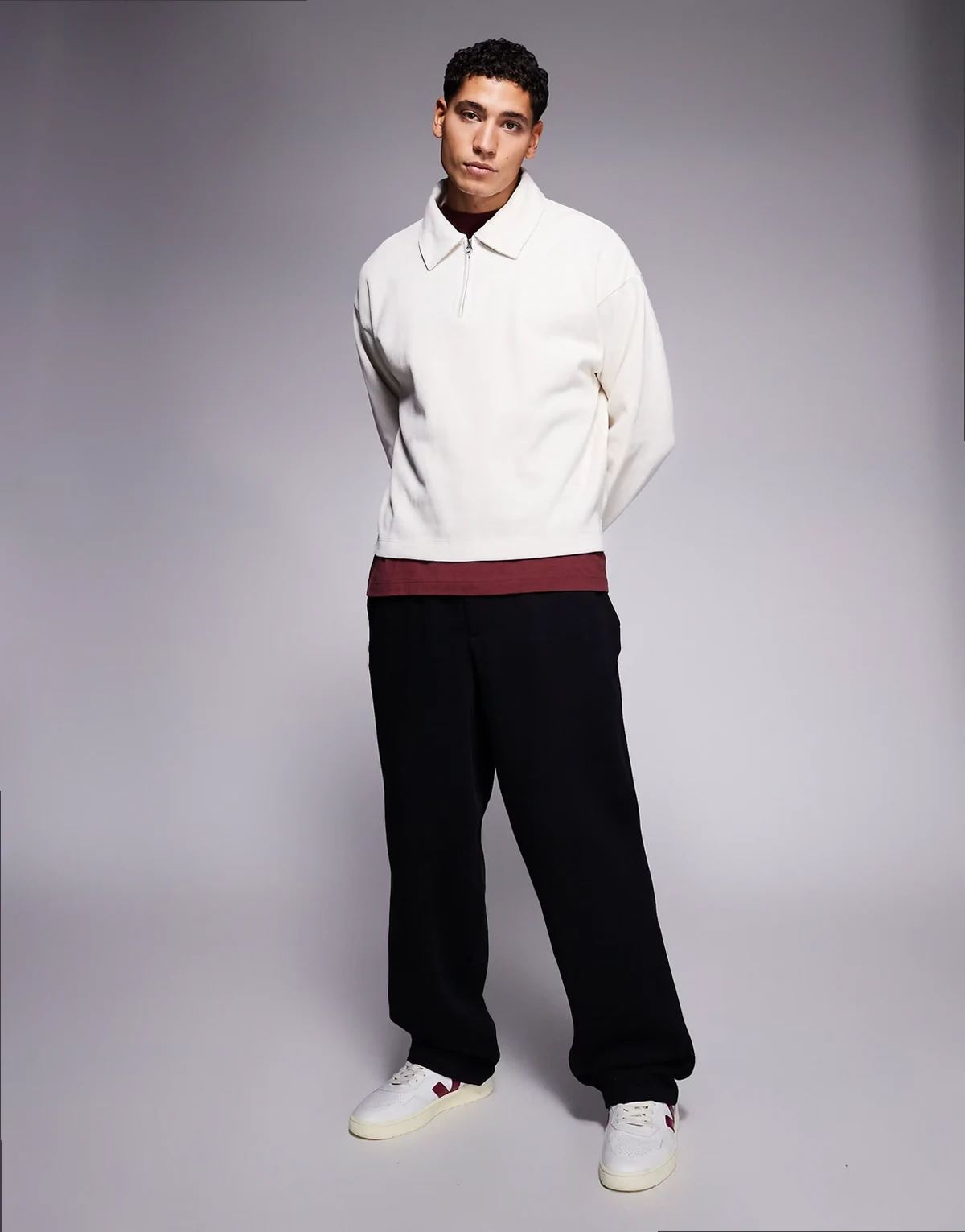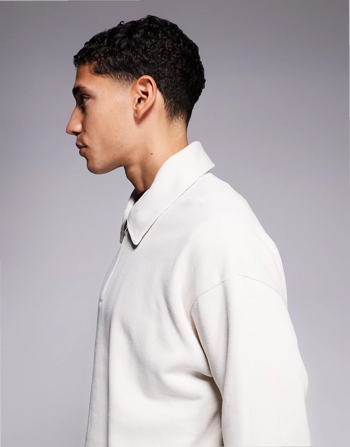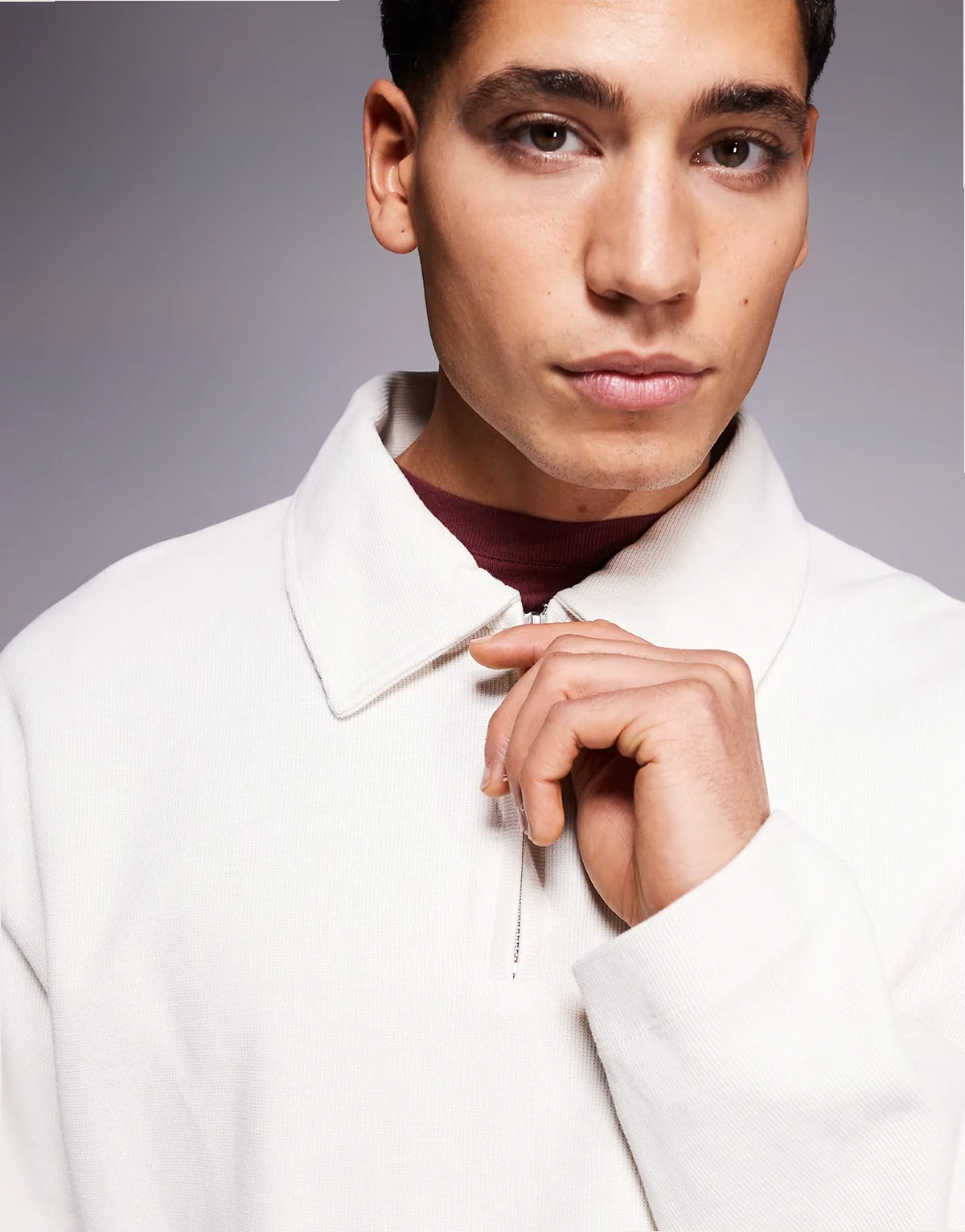 collared quarter zip sweatshirt in cream