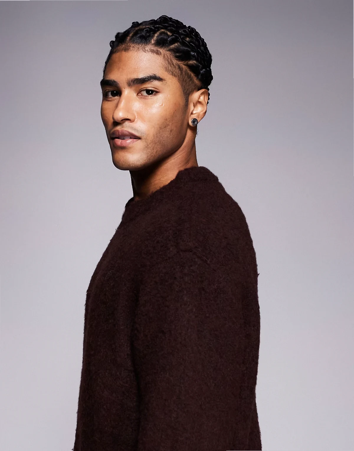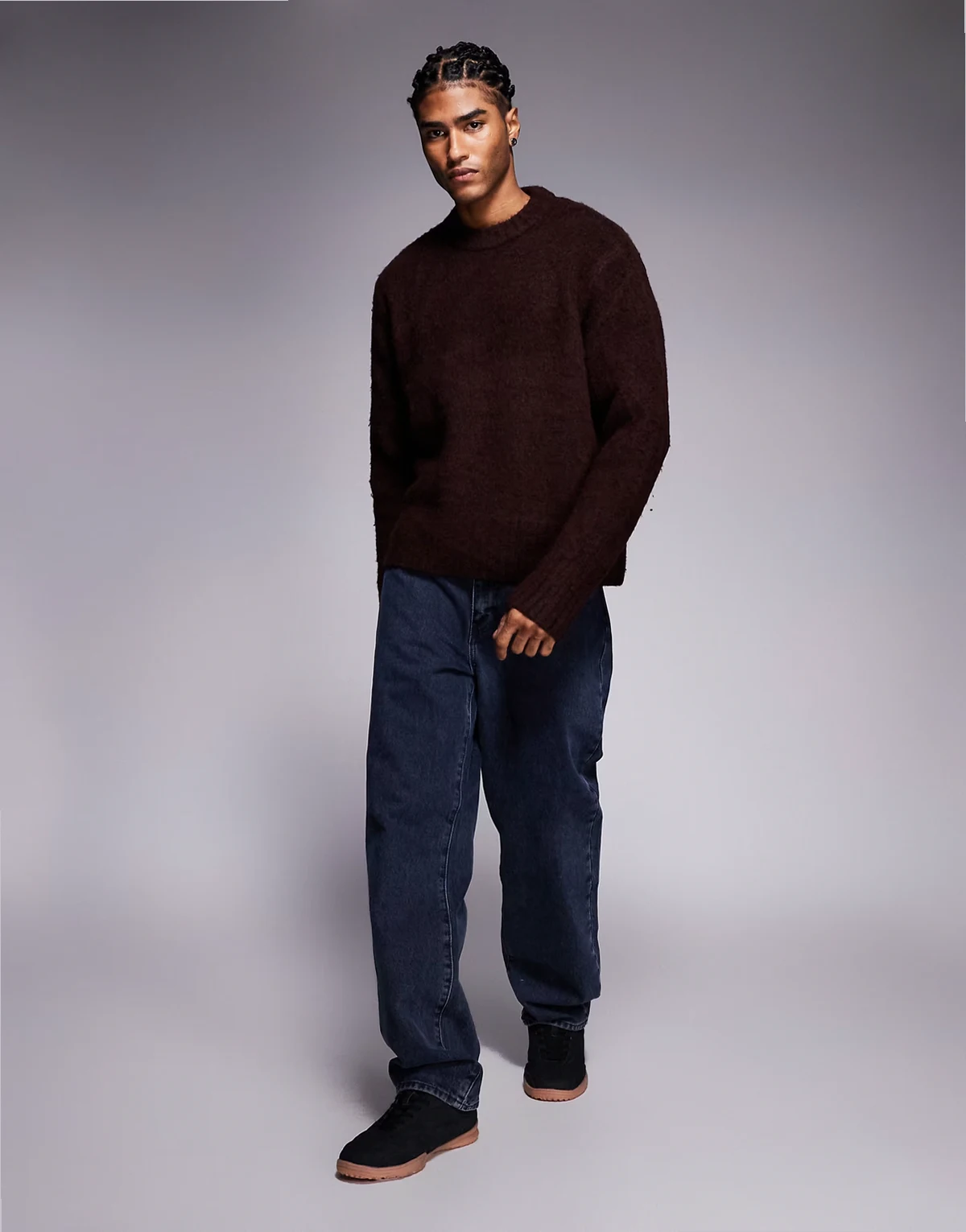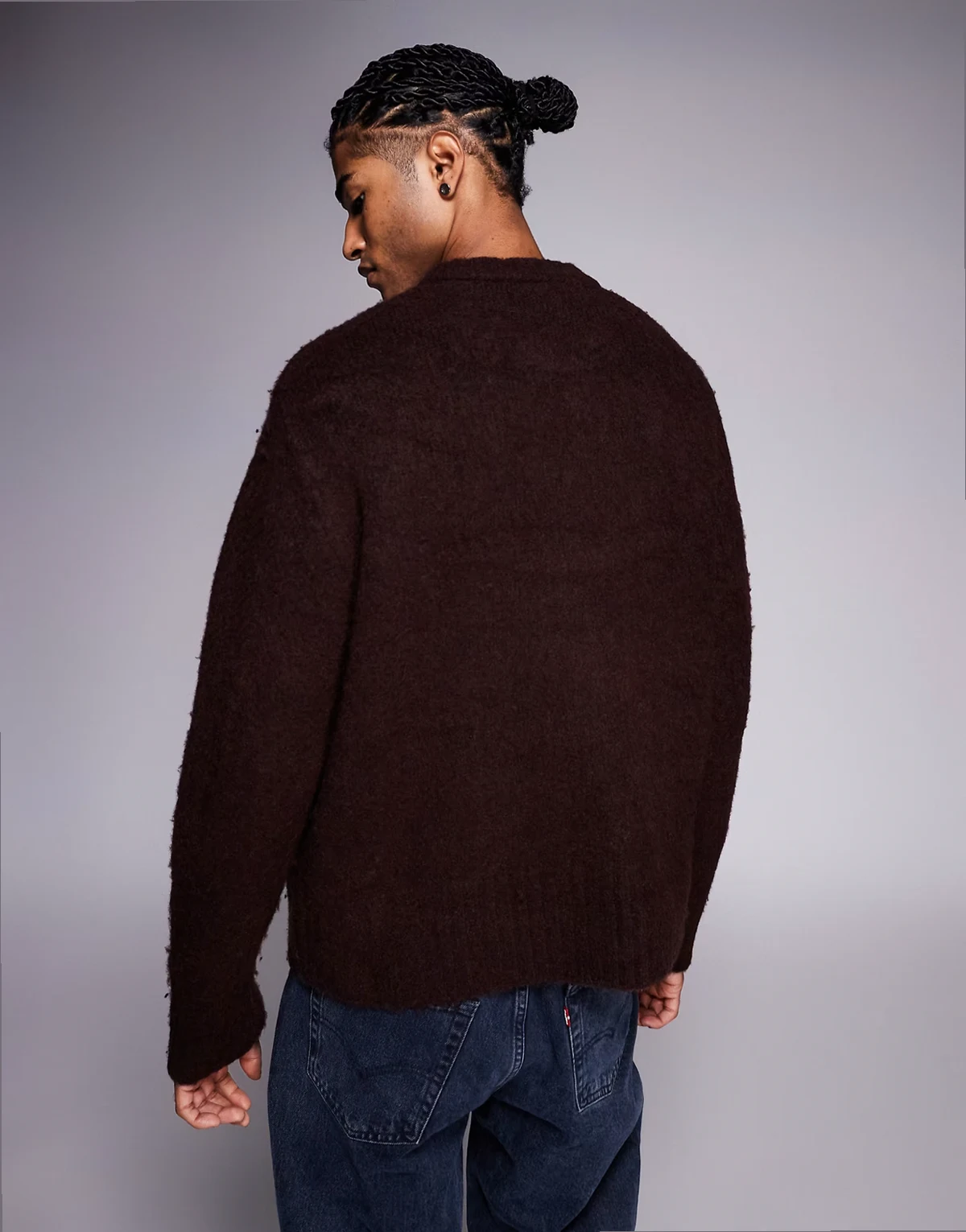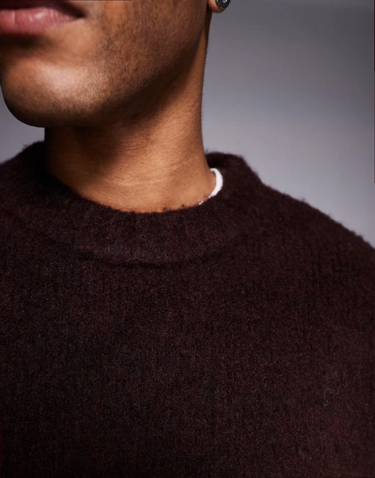 fluffy knit sweater in burgundy