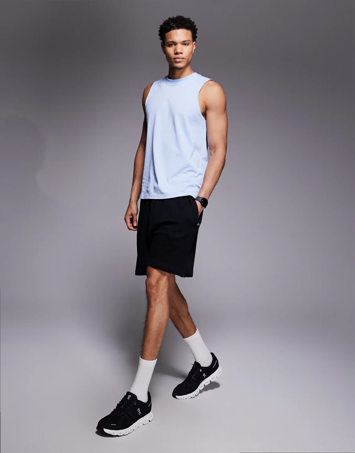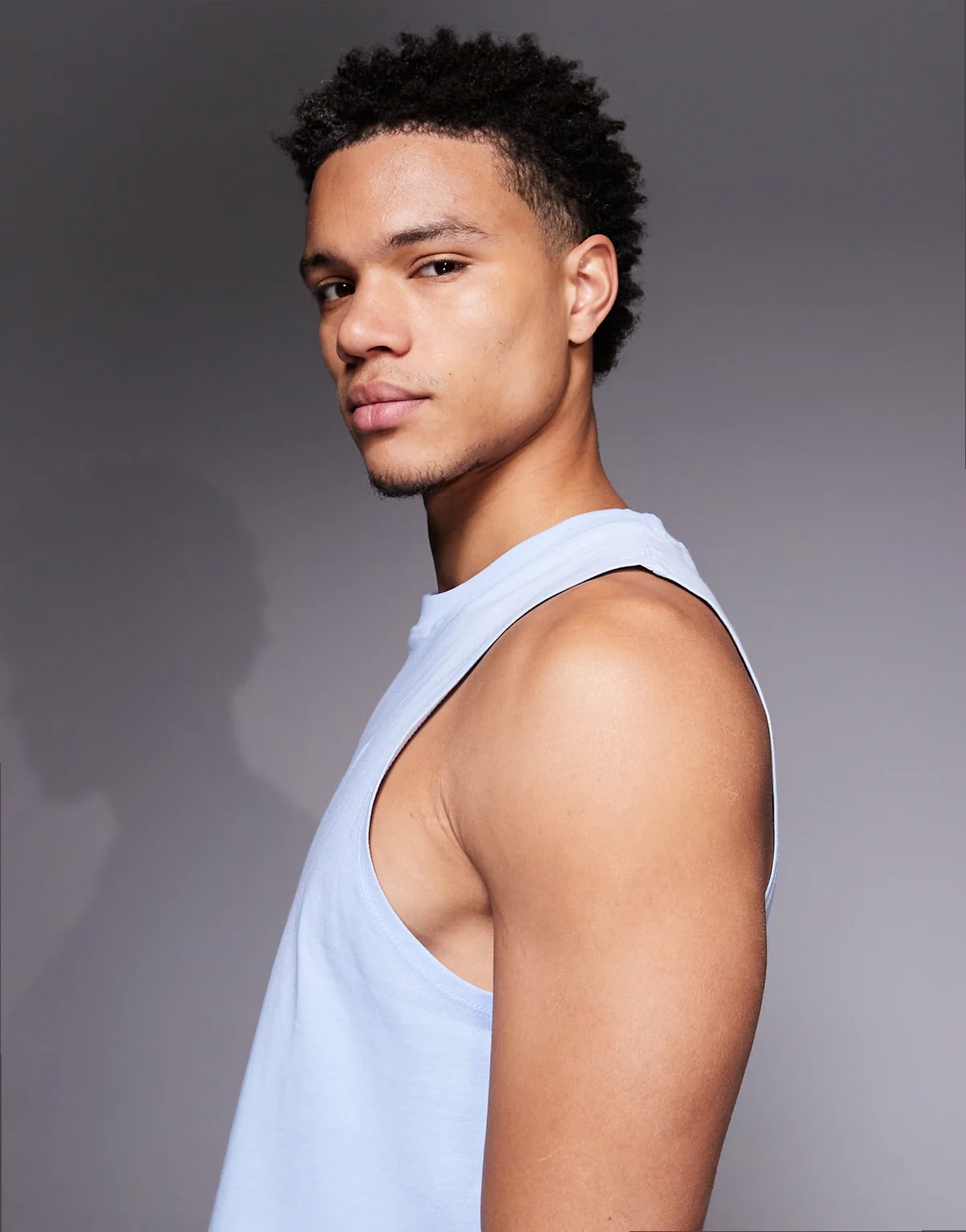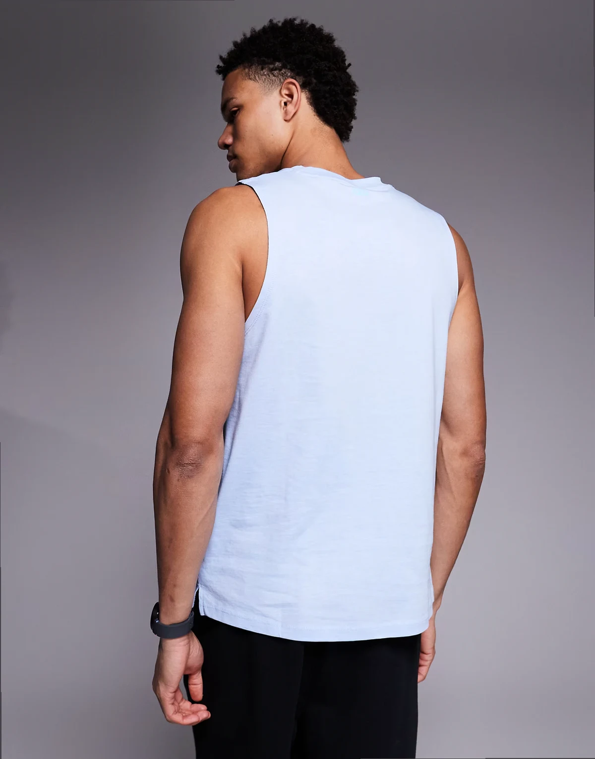 Icon drop armhole cotton training tank top with quick dry finish in light blue