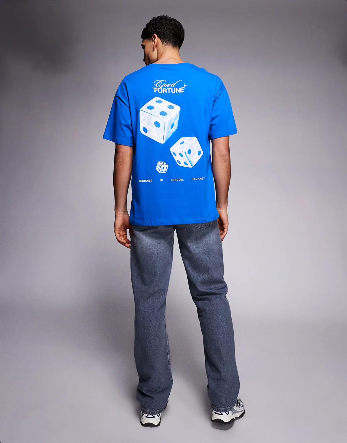 oversized t-shirt with dice back print in blue