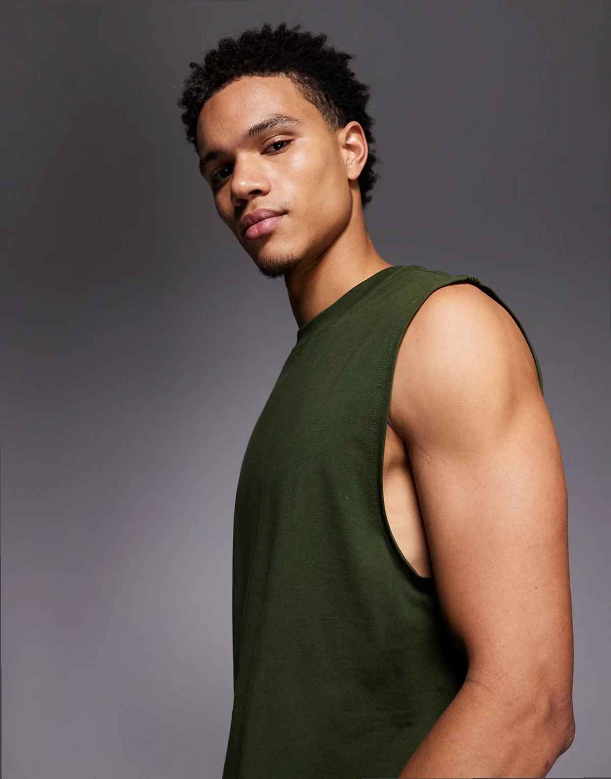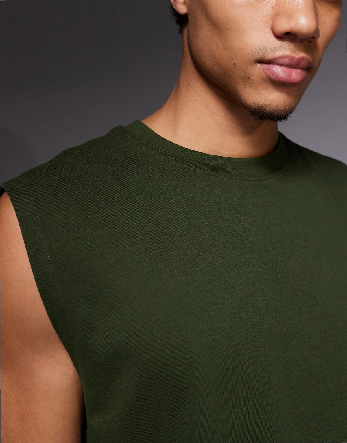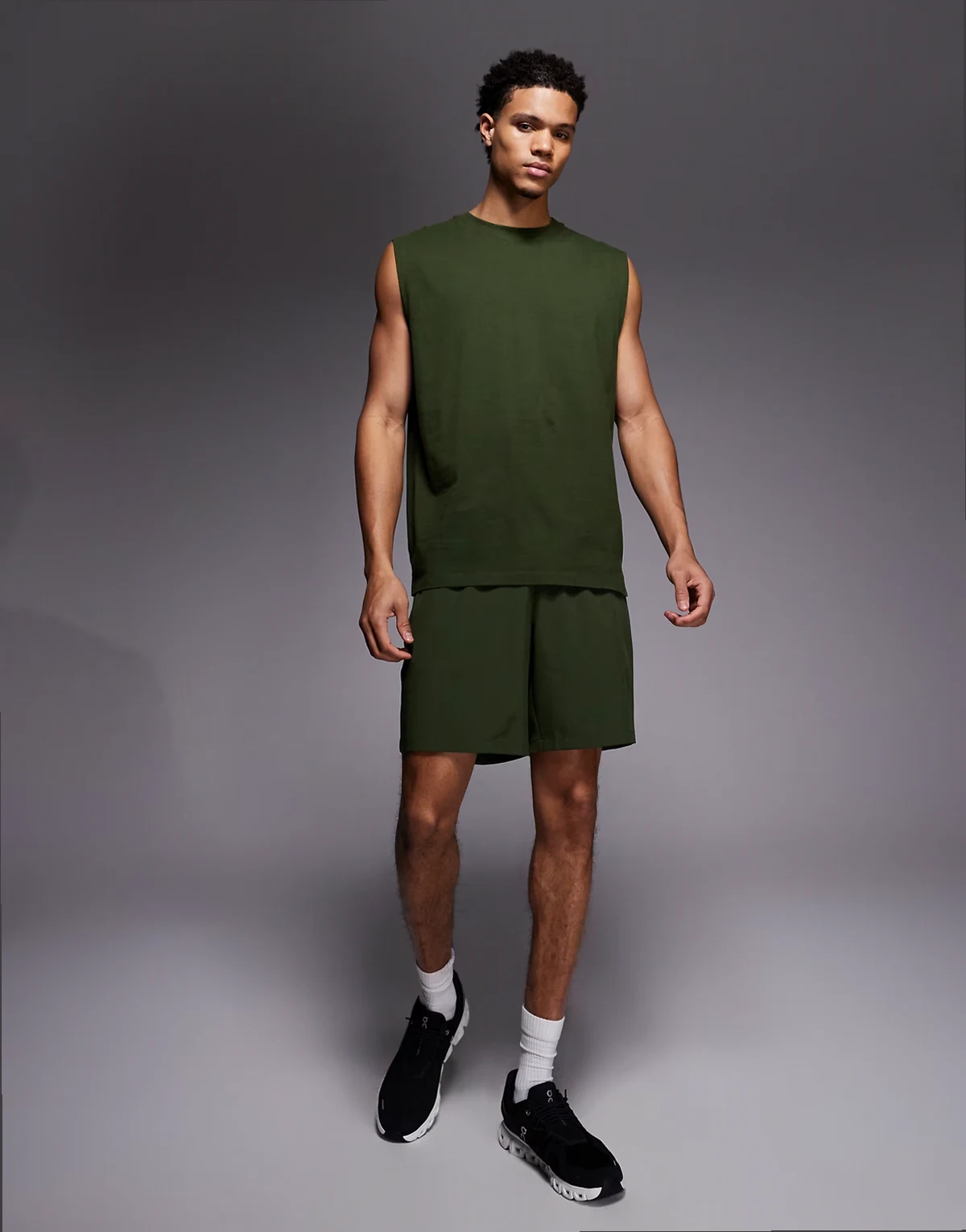 Icon cotton oversized pump training tank with quick dry finish in washed khaki