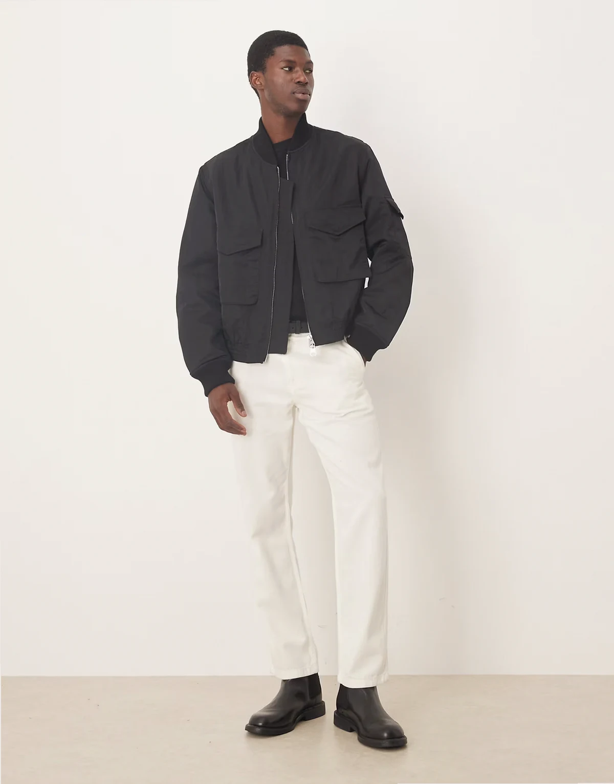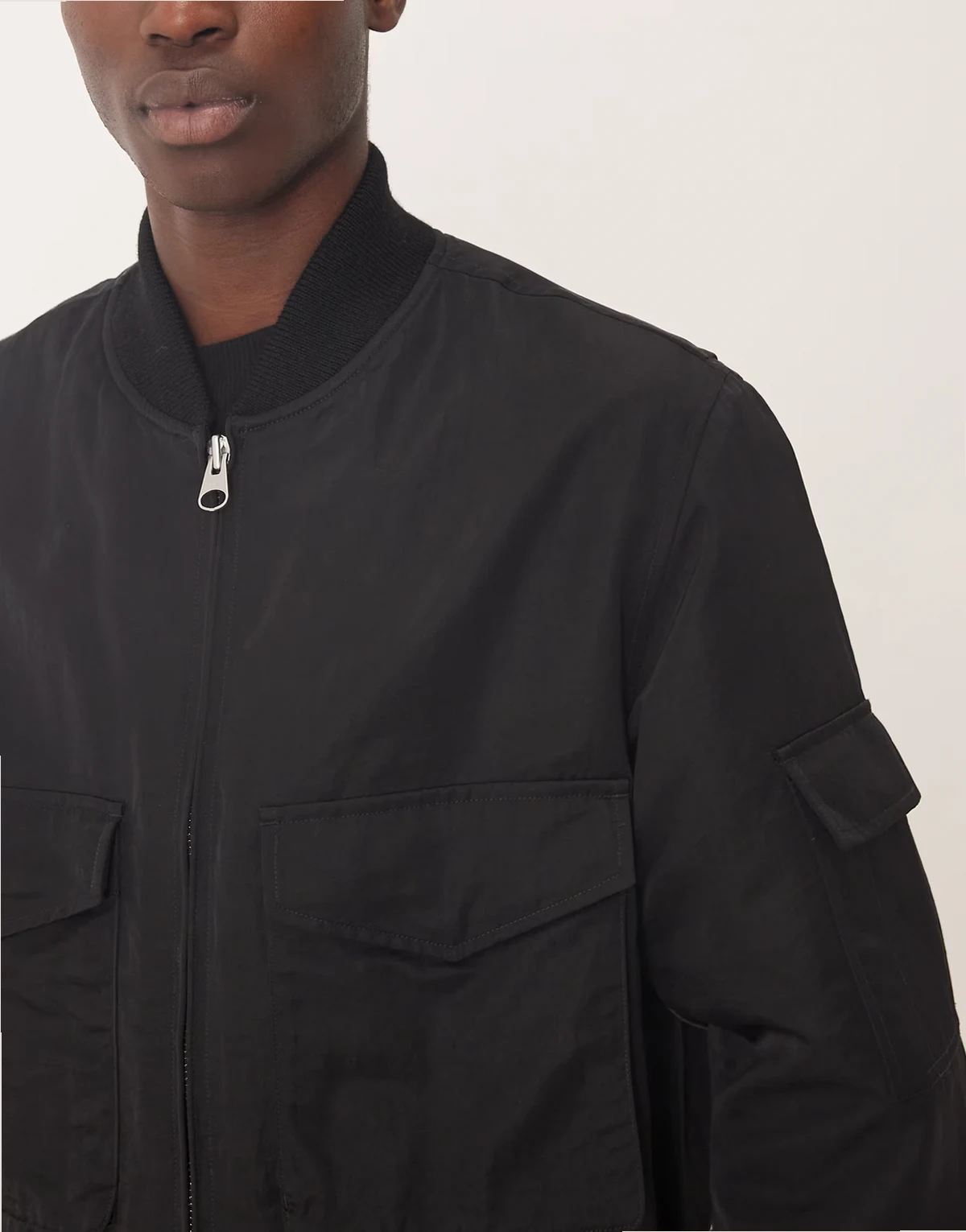 bomber jacket with workwear pockets in black
