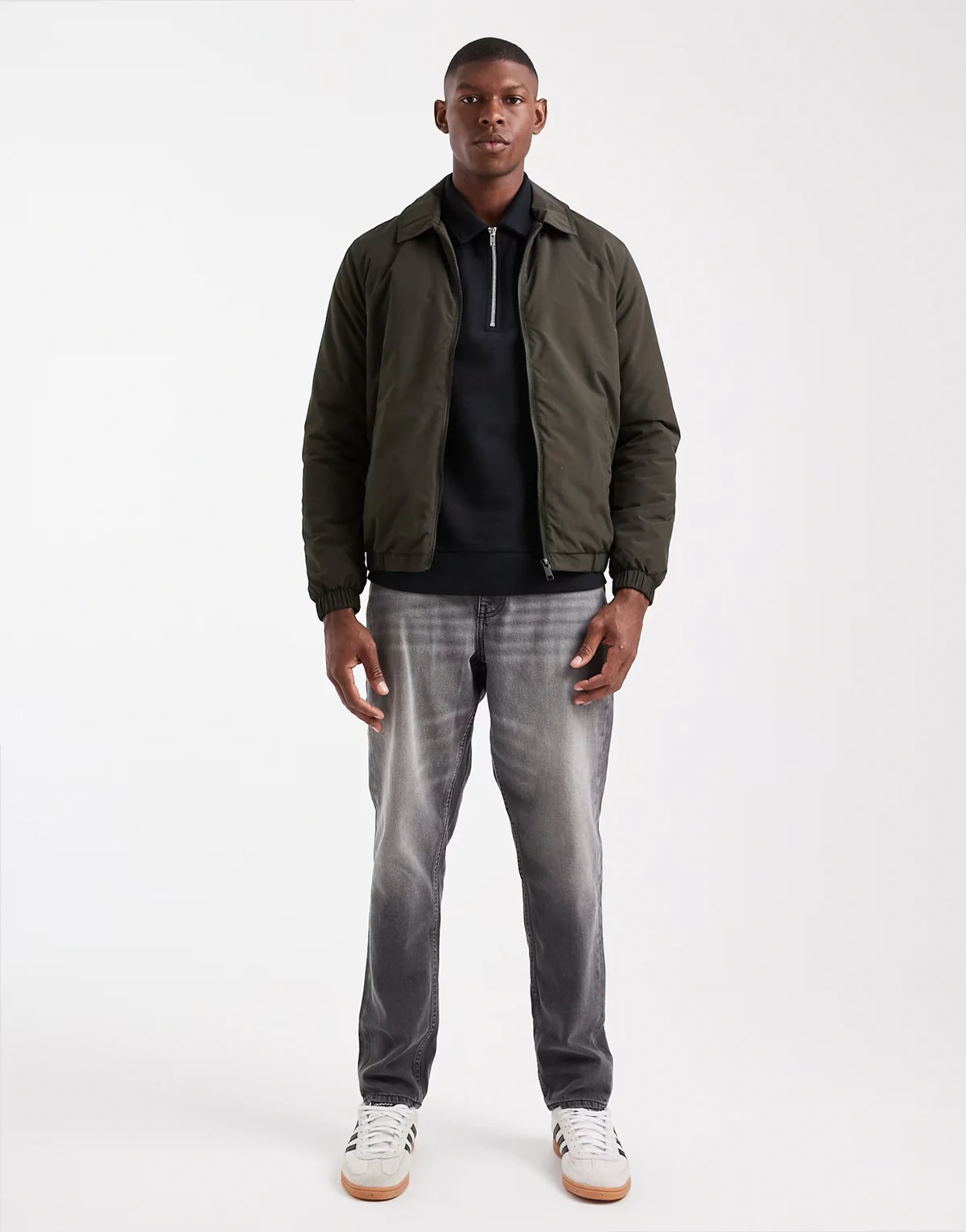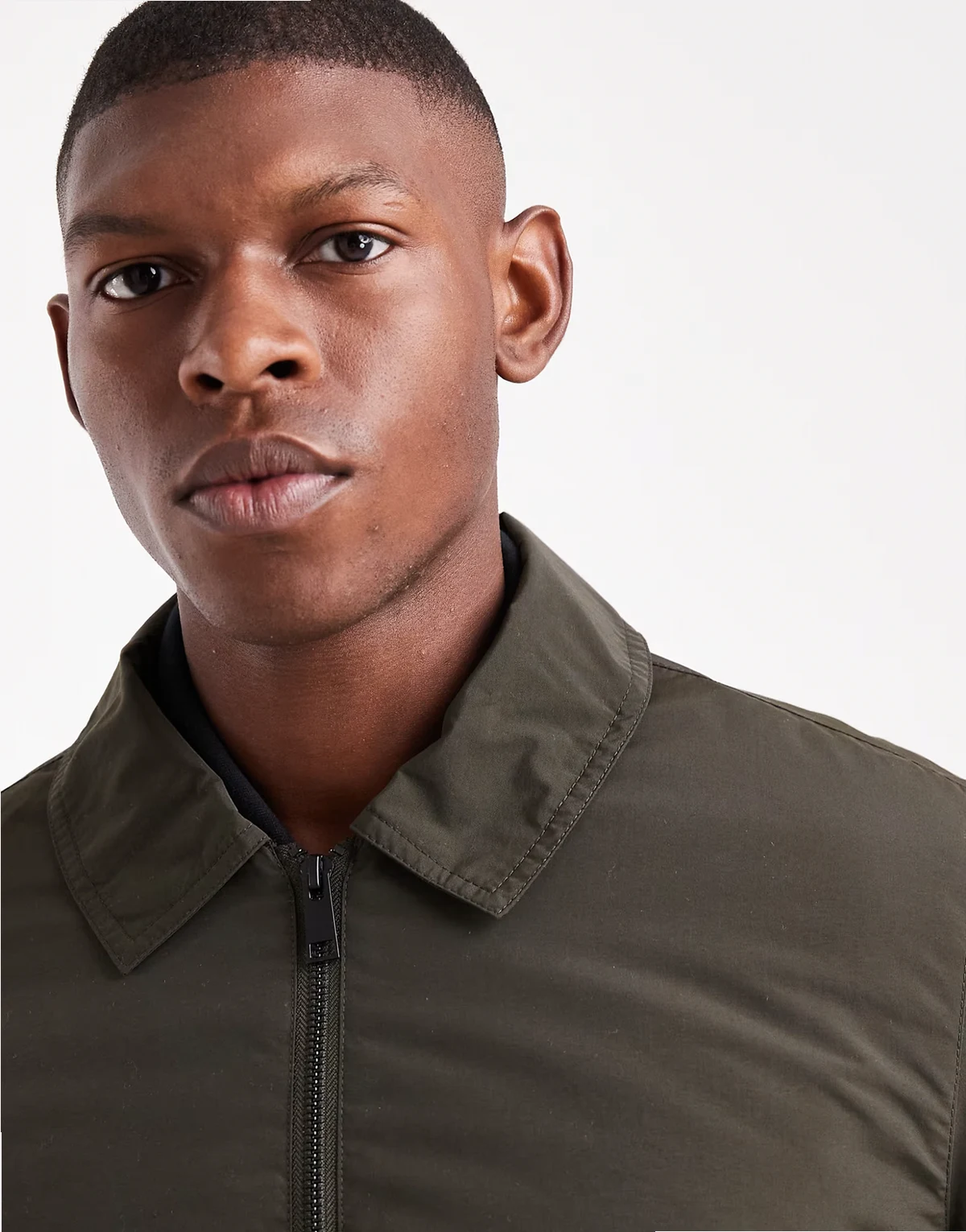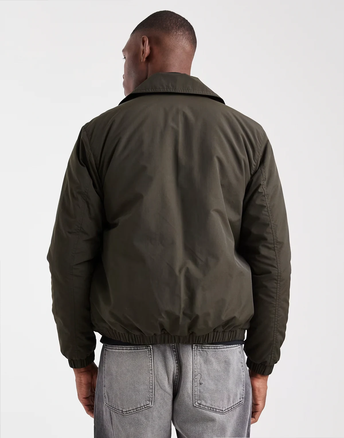 padded collared short jacket in khaki green