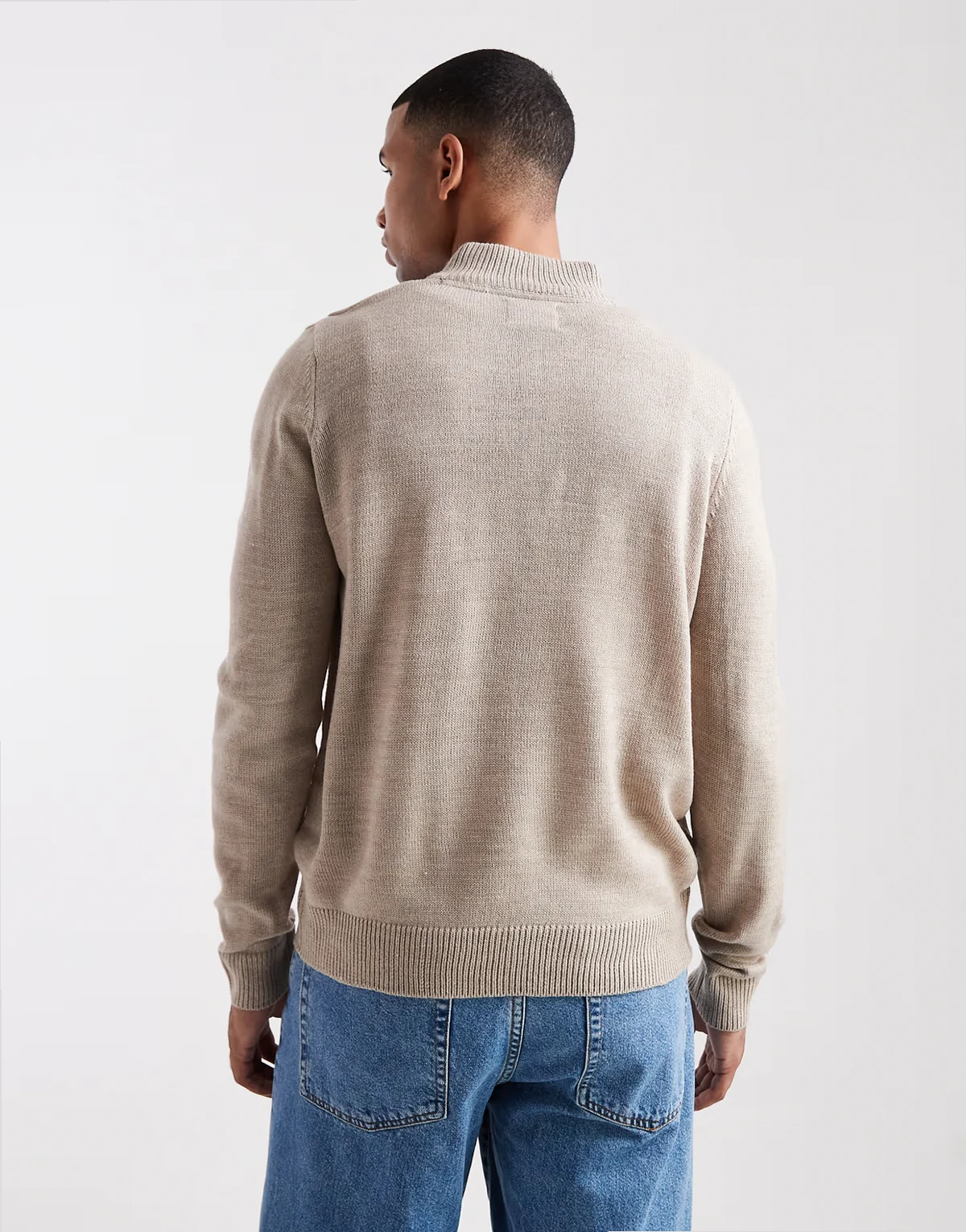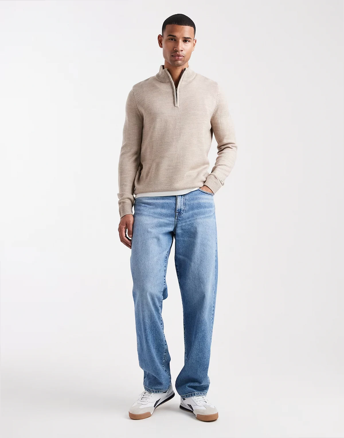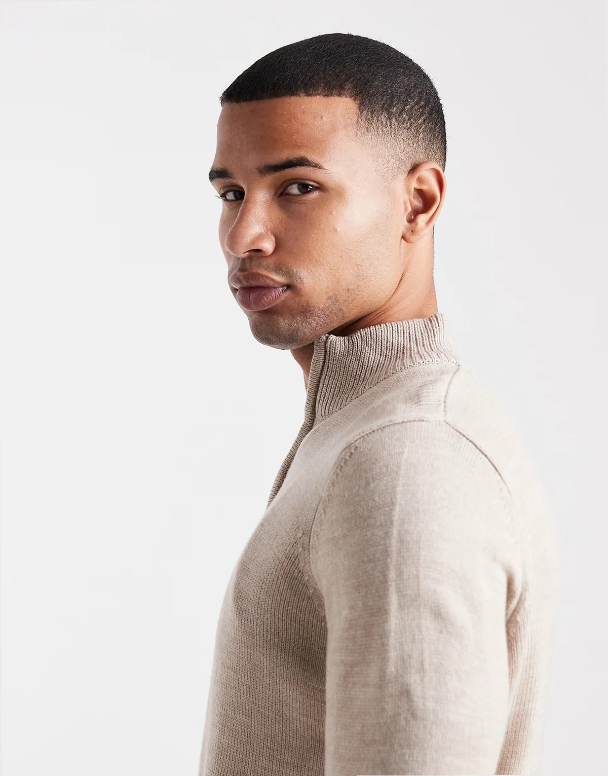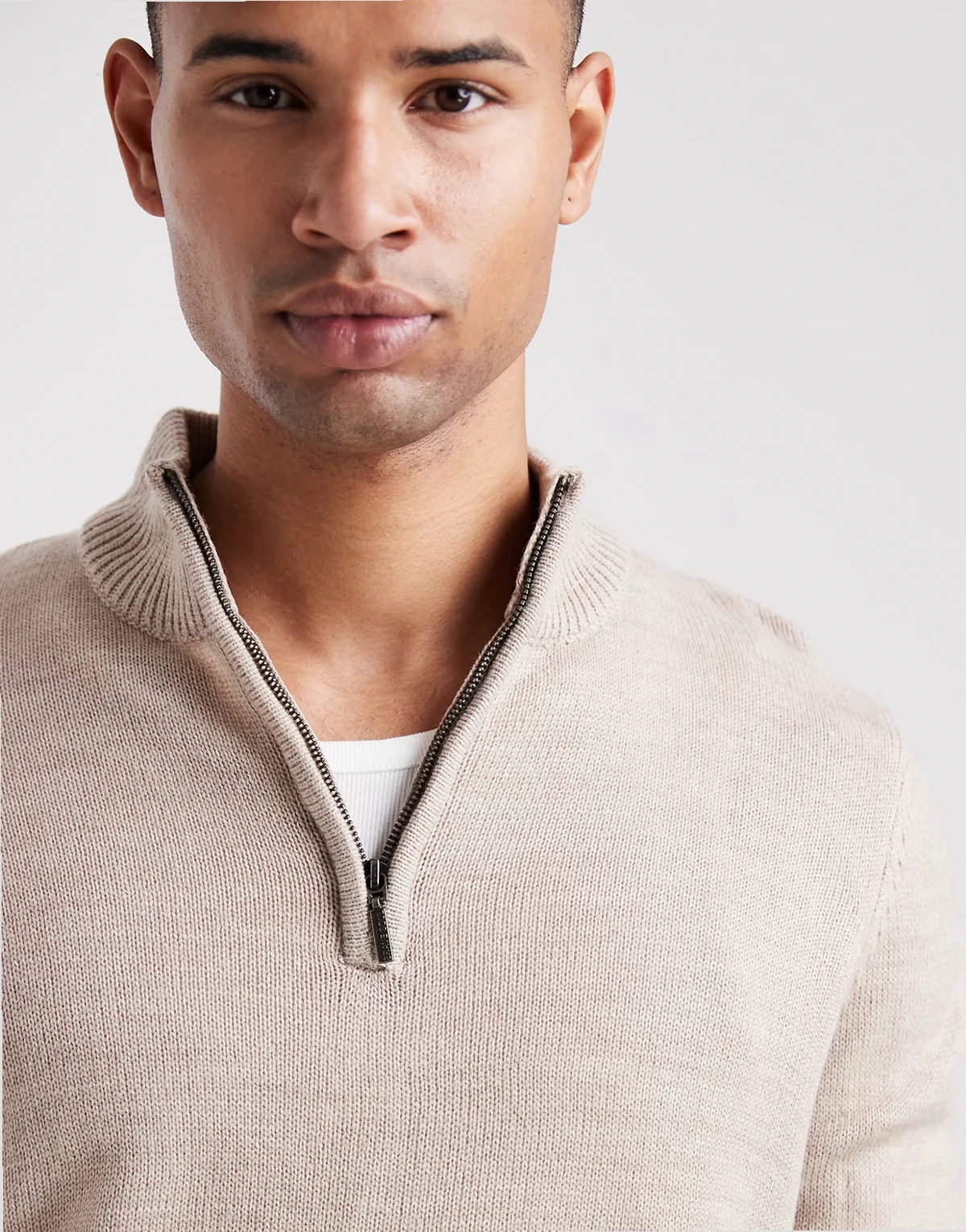 knit quarter zip sweater in beige