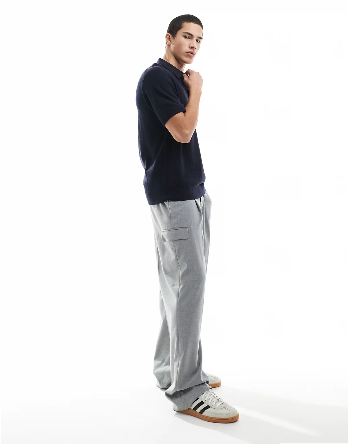 Premium texture button polo shirt in navy