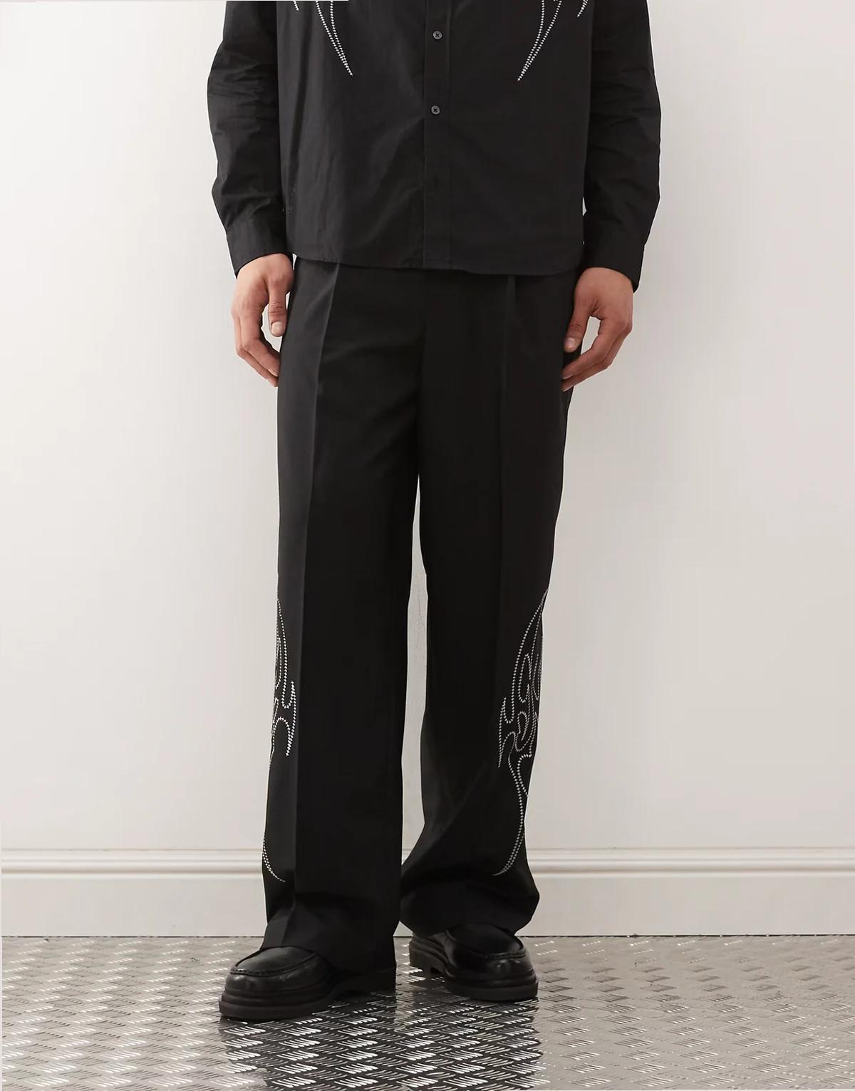 tailored pants with silver embroidery in black - part of a set