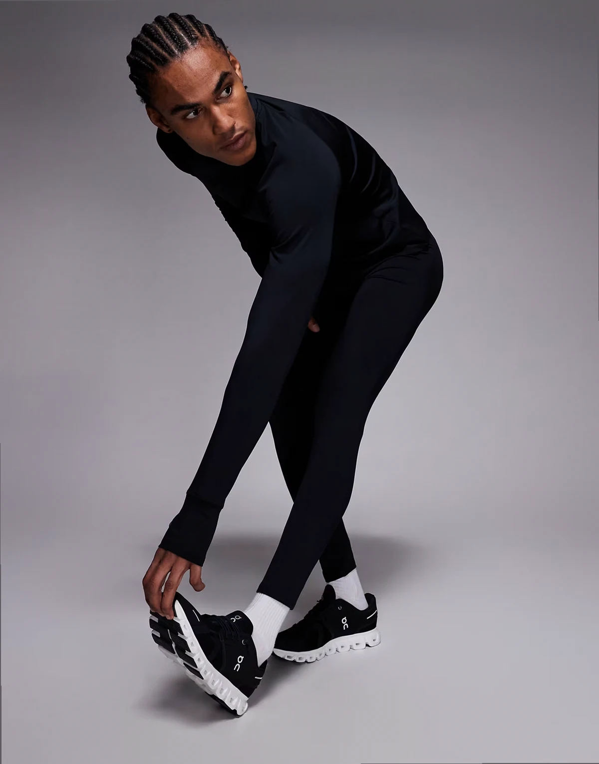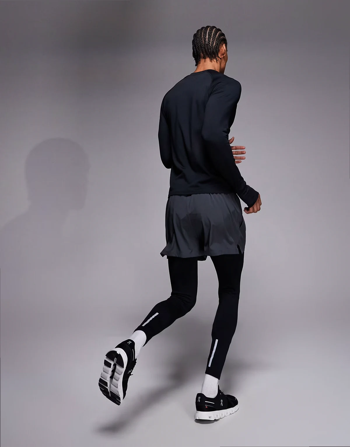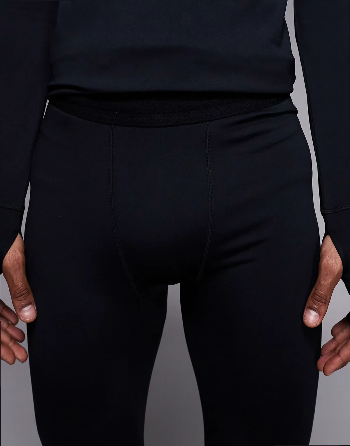 Thermal running base layer tights with phone pocket in black