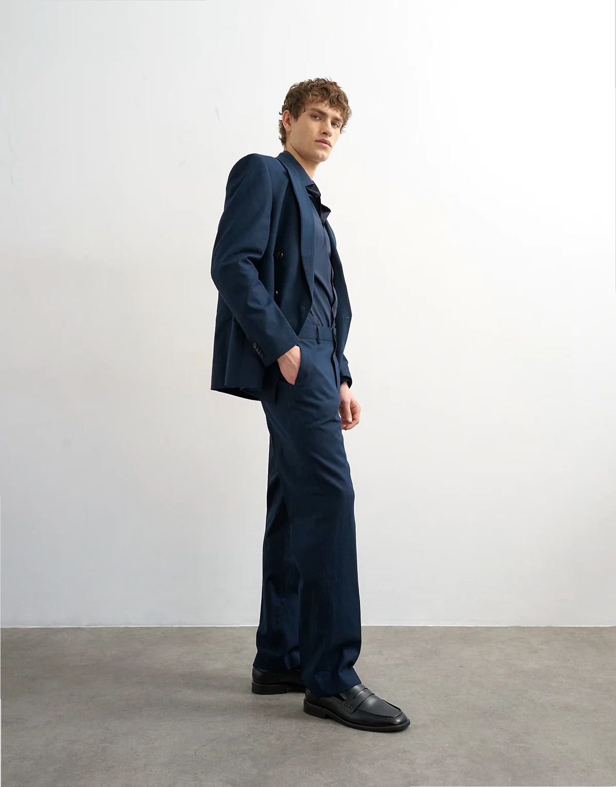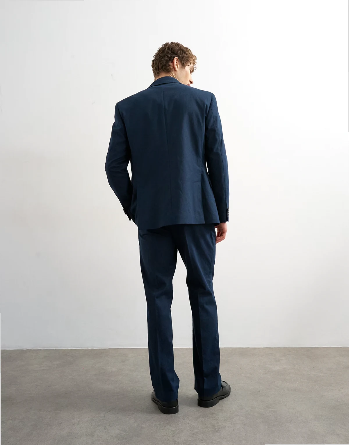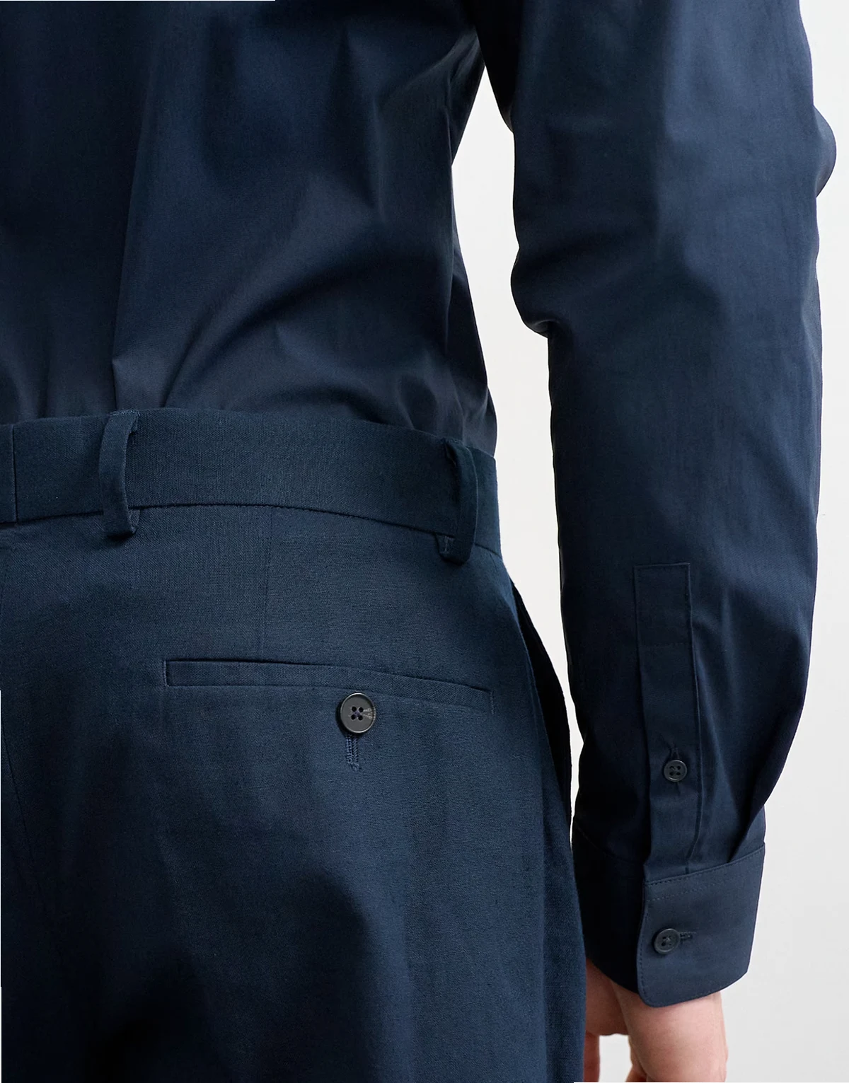 straight fit linen blend pants in navy
