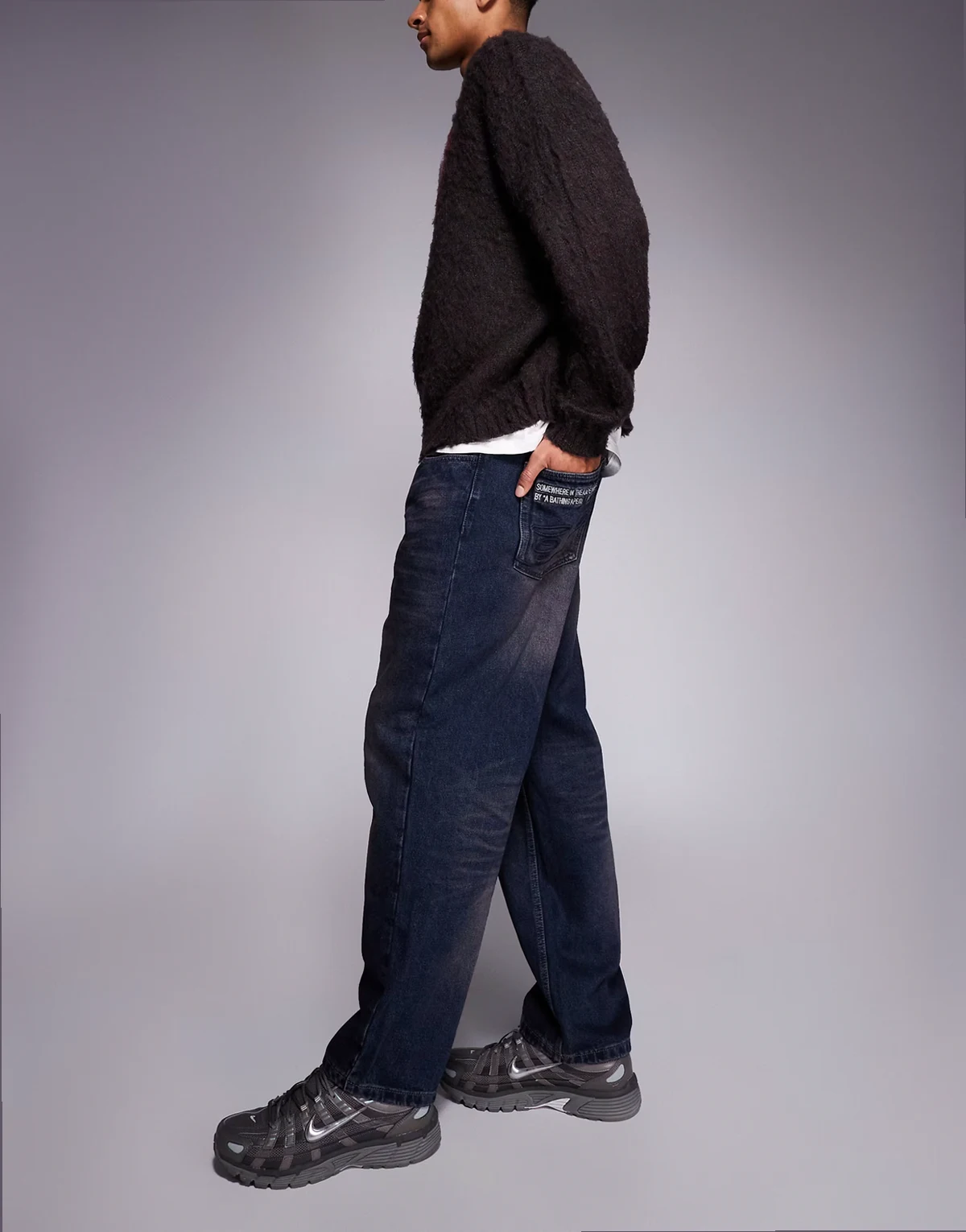 Aape by A Bathing Ape loose fit denim jeans in dark navy blue