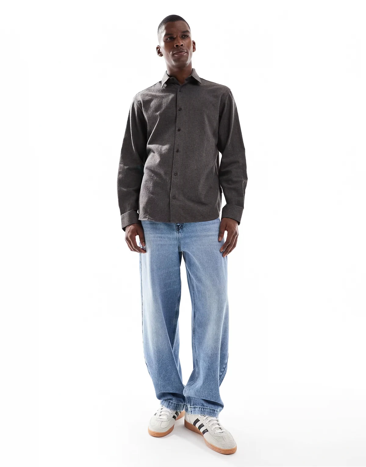 brushed long sleeve shirt in brown