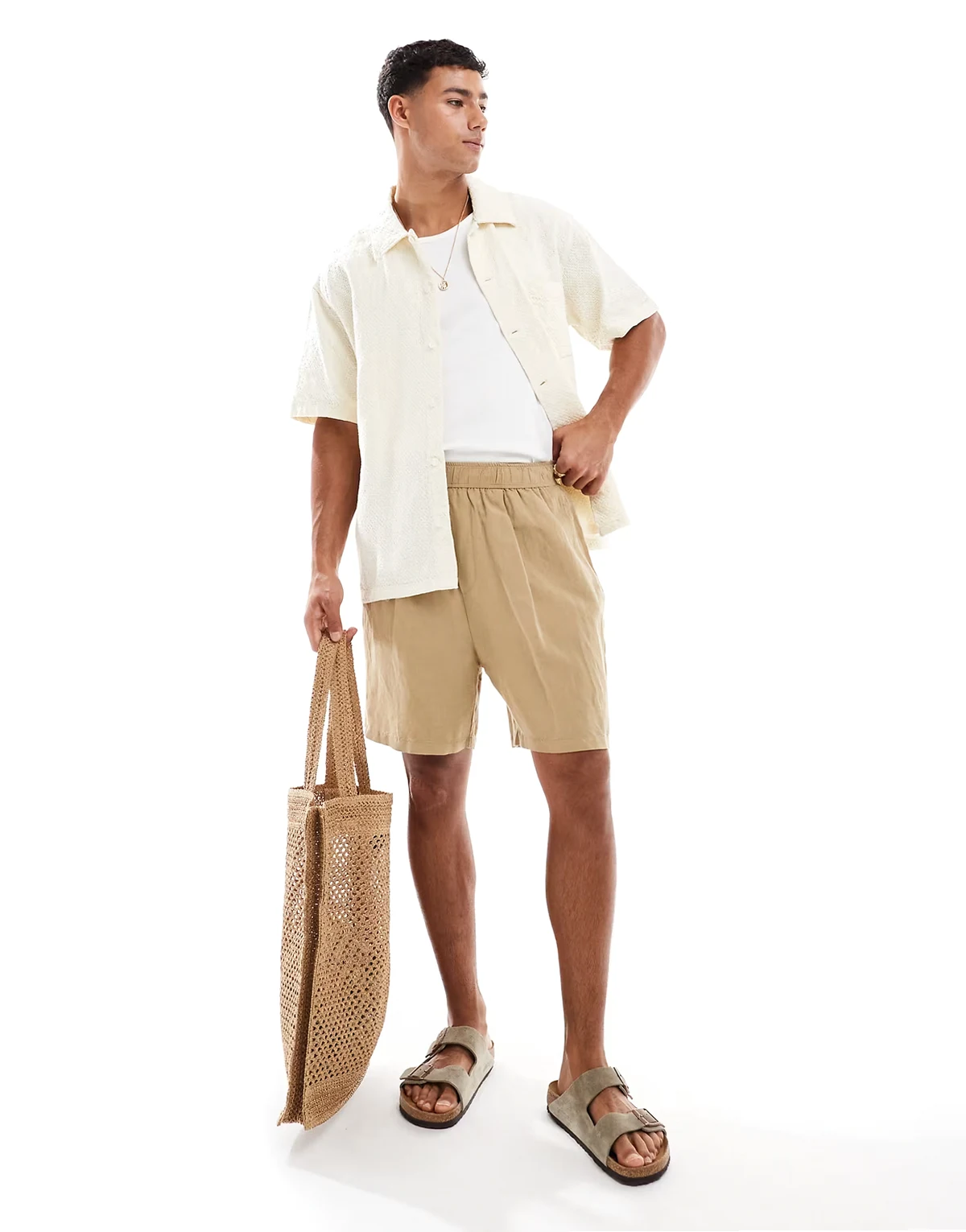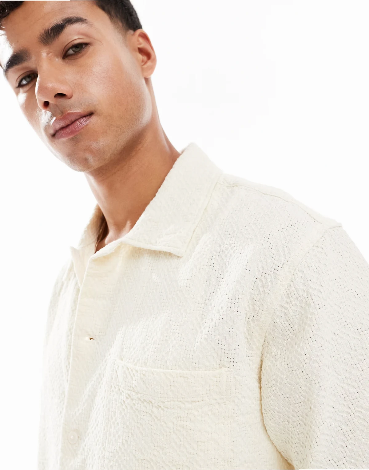 textured oversized shirt in ecru