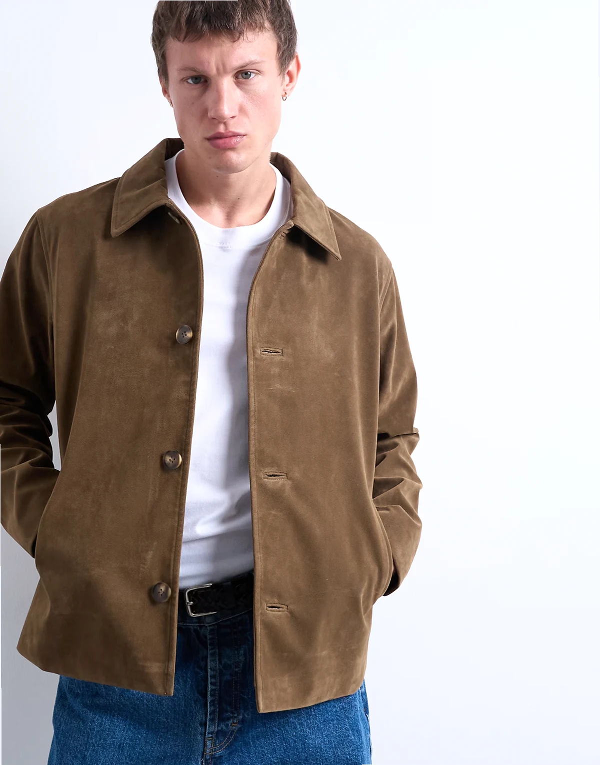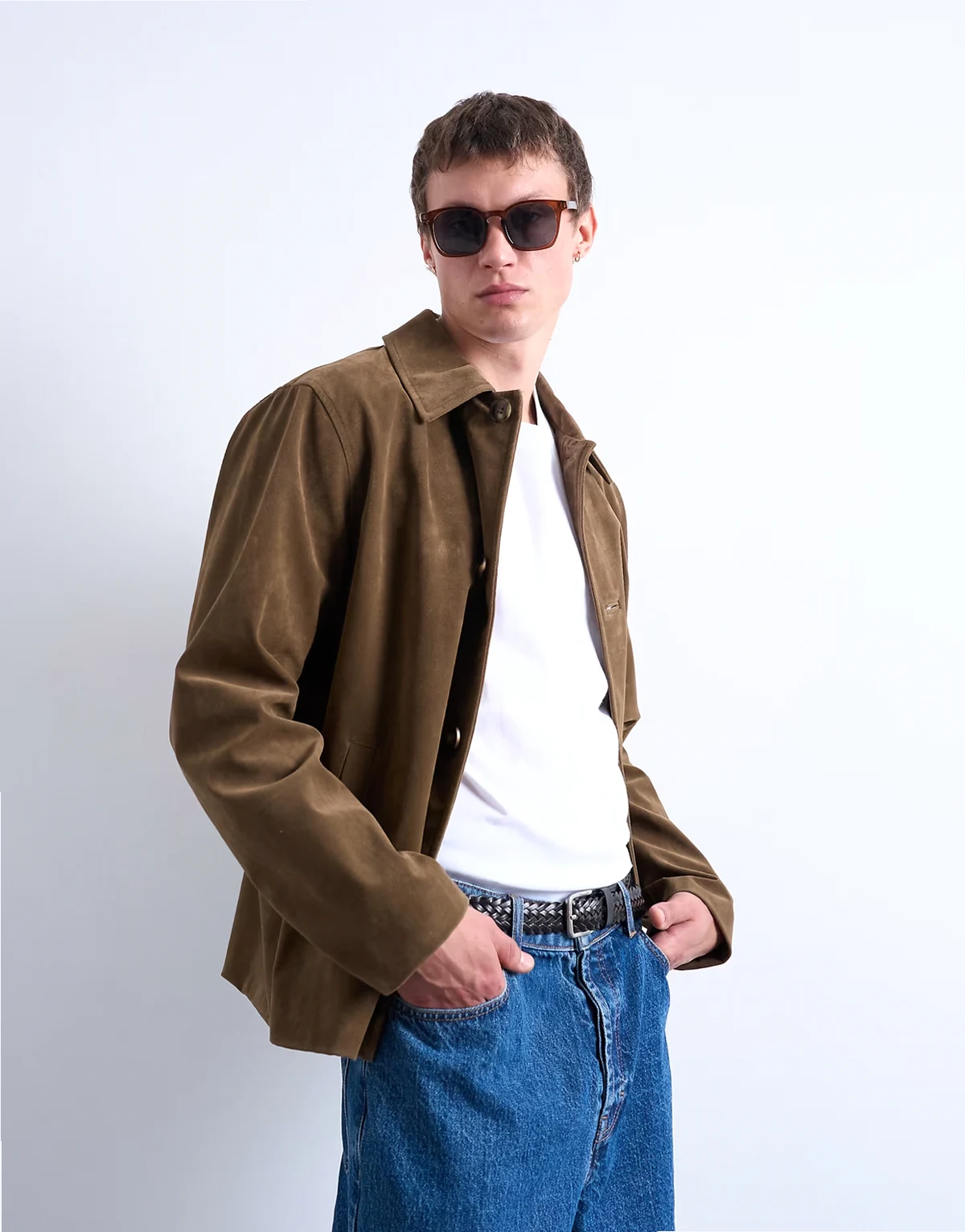 This jacket is crafted out of a soft, textured fabric with a spread collar and button placket. Complete with two pockets, this western-inspired piece is cut to a regular fit.